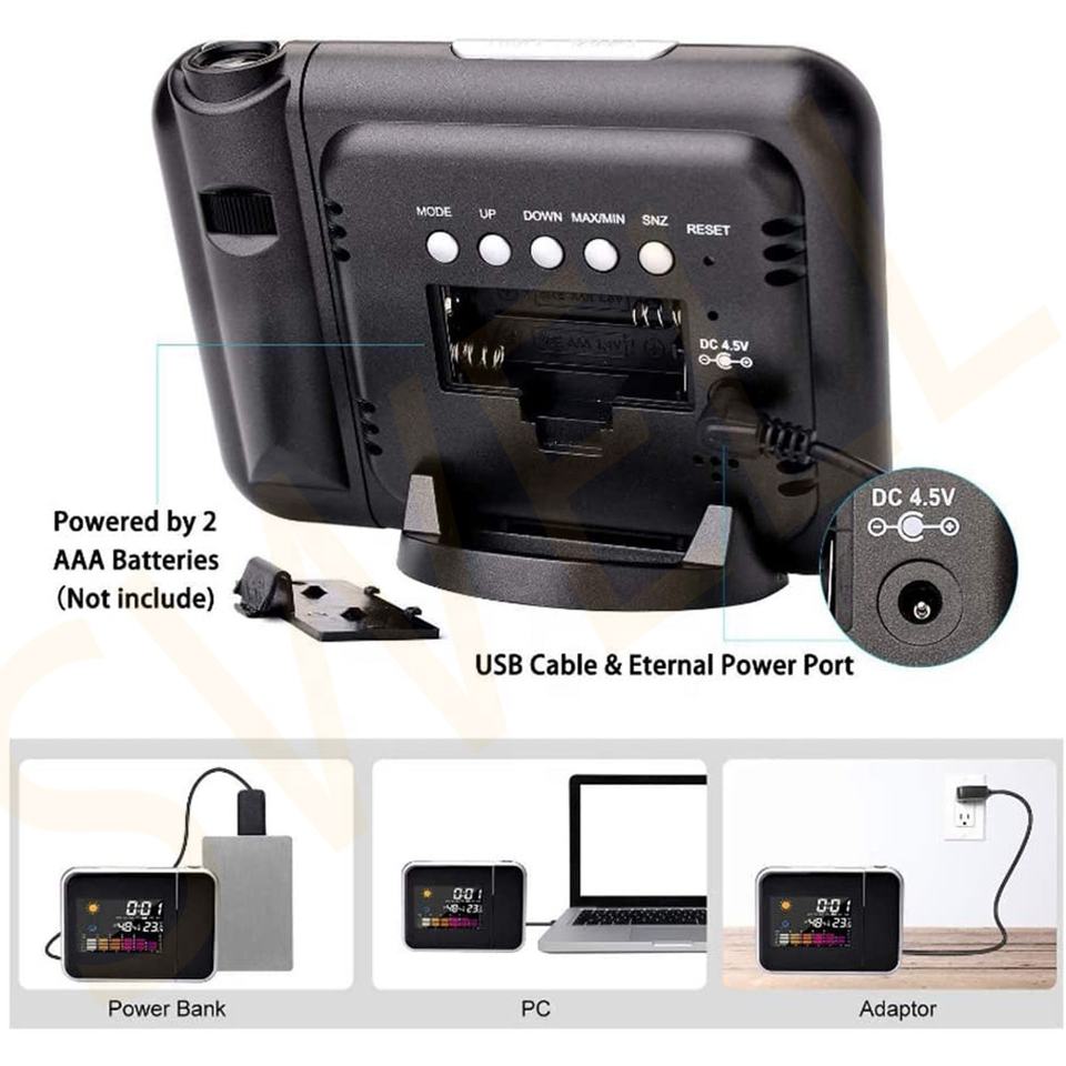 Station météo numérique, humidité intérieure/extérieure, thermomètre, Projection néon, alarme/réveil, 24 heures