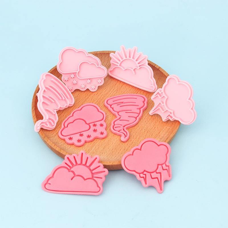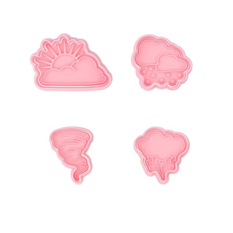 Ensemble de découpoirs à biscuits 3D sur le thème météo : Tornade, Éclair, Neige, Dessins animés, Tampons à pâte à modeler DIY
