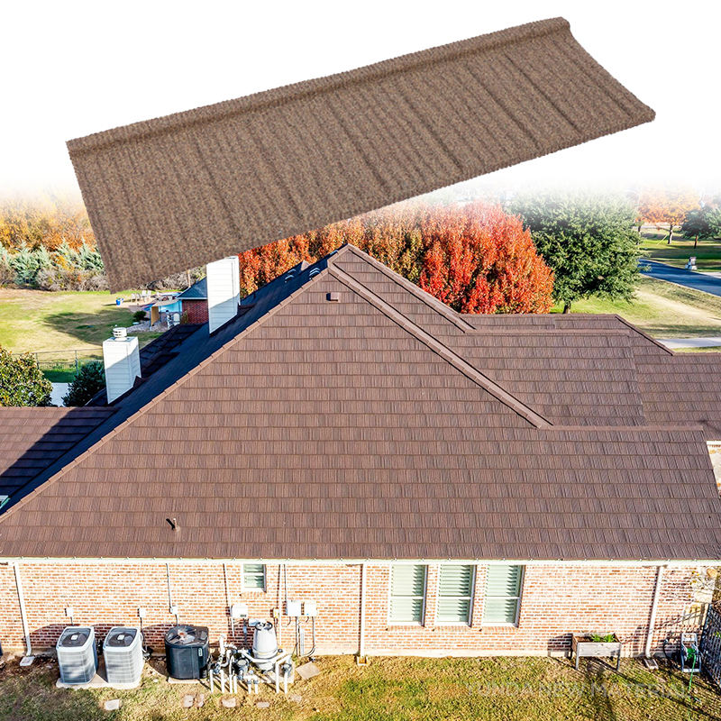 Tuile de toiture en métal revêtue de pierre, design bois, résistante aux intempéries, plaque de toiture Dacra