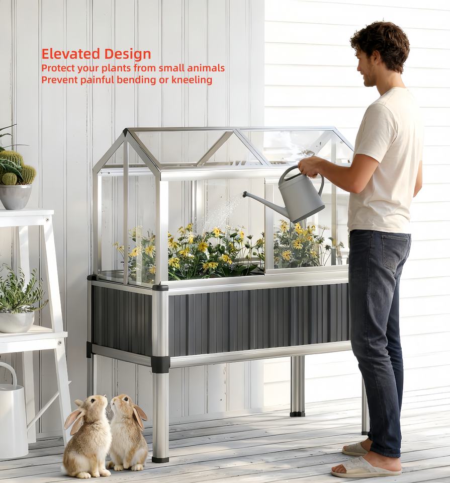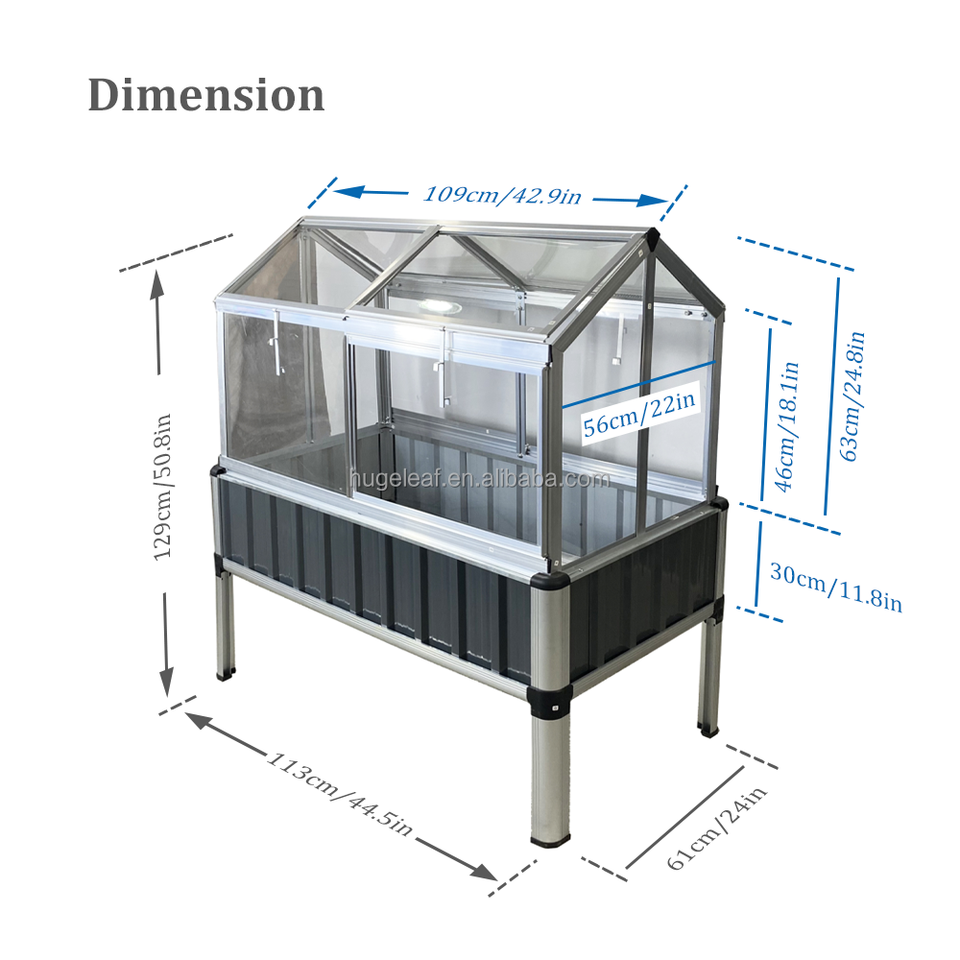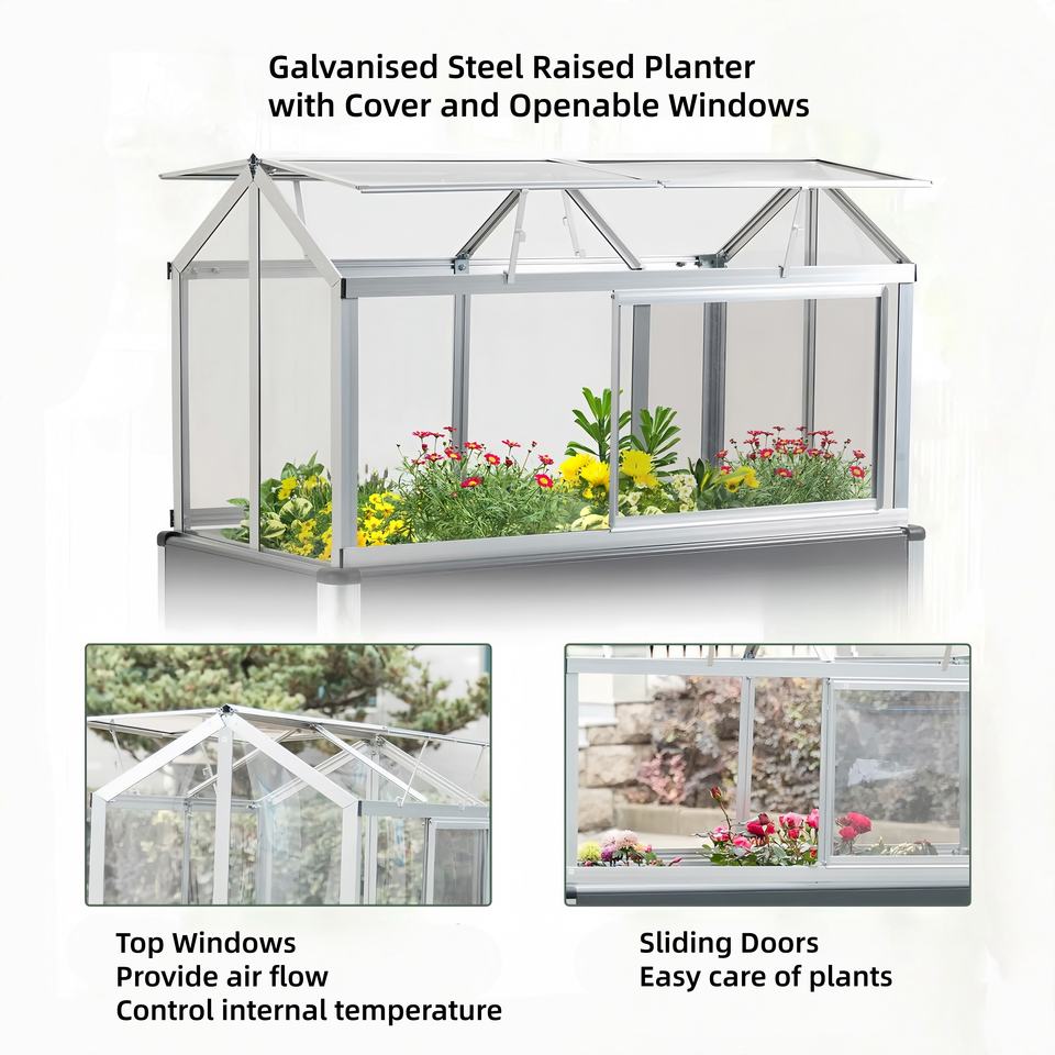 Description:Jardinière surélevée en acier galvanisé avec couvercle et fenêtres ouvrantes