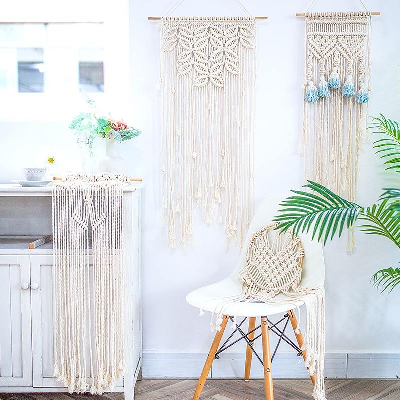 Tapisserie murale en coton tressé à la main, style moderne et épuré, pour salon, chambre ou bureau