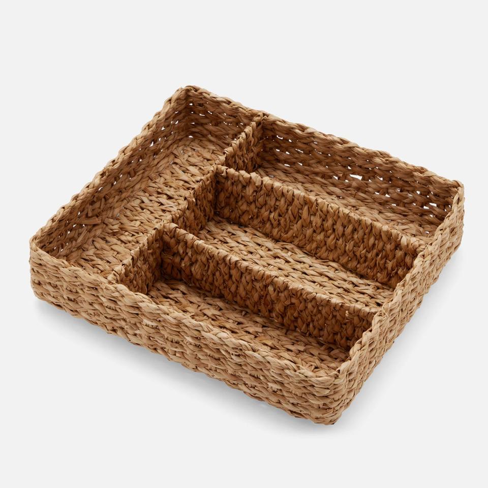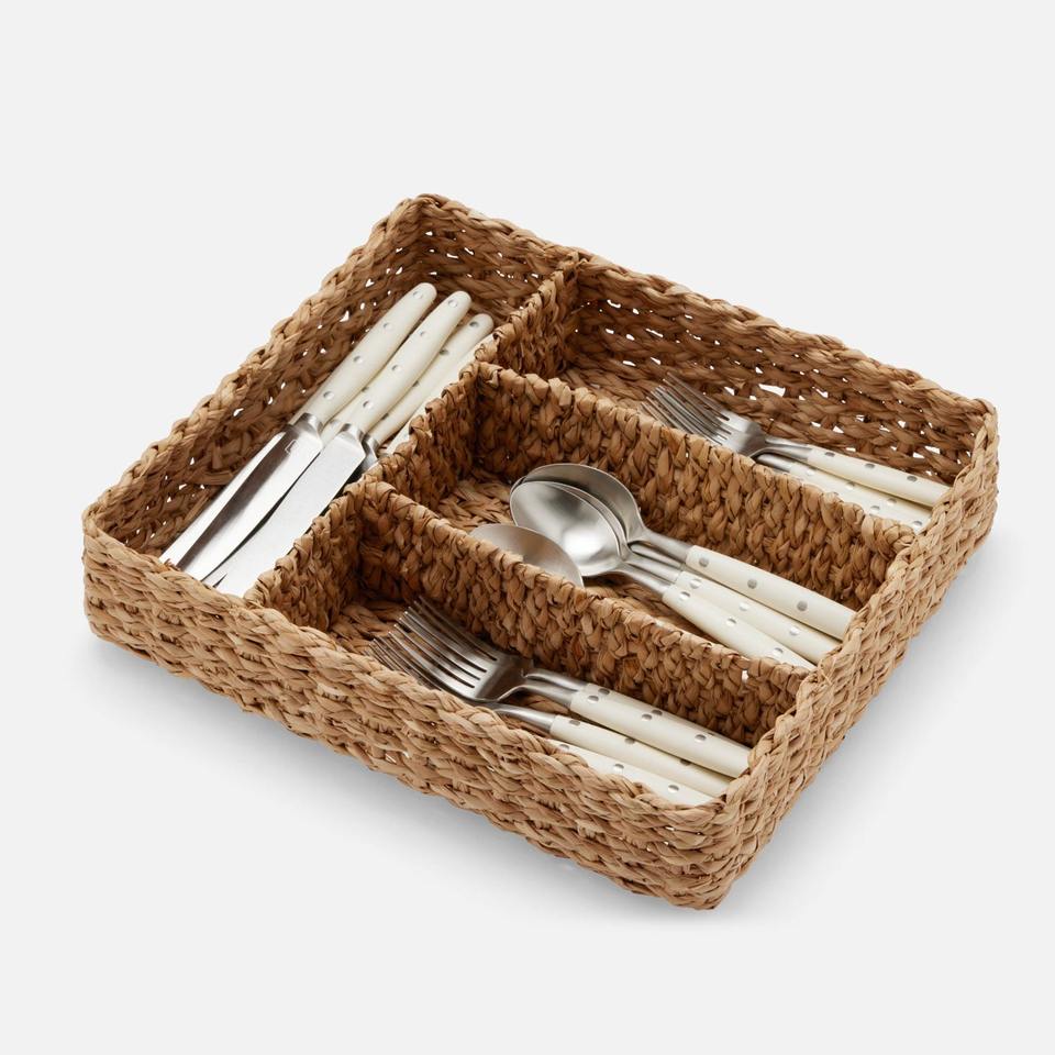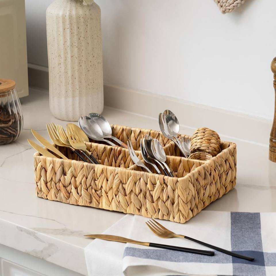 Weaving cutlery tray utensil holder for drawers water hyacinth silverware trays with compartments
