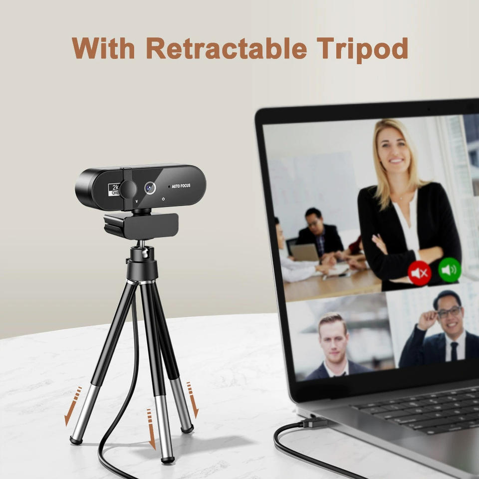 Webcam 2K QHD avec autofocus, caméra USB, microphone intégré pour ordinateur de bureau, ordinateur portable, streaming