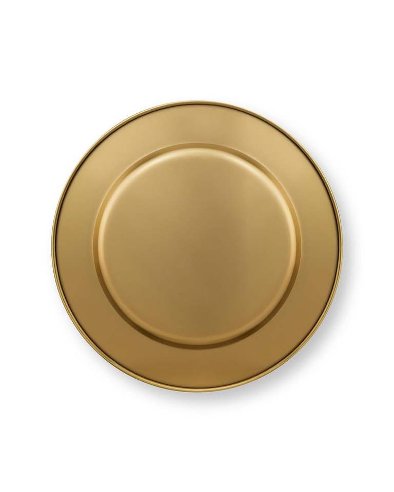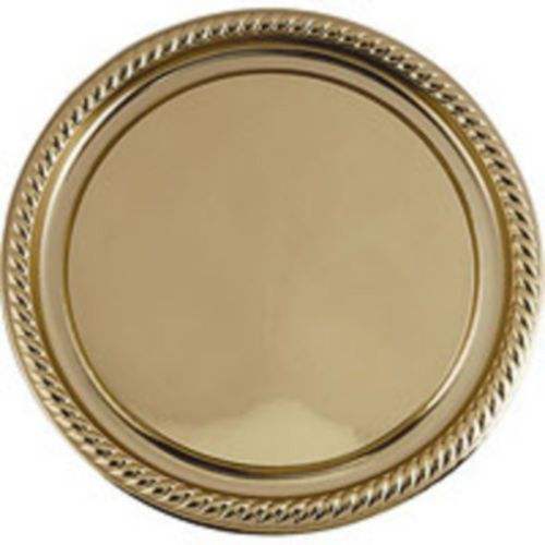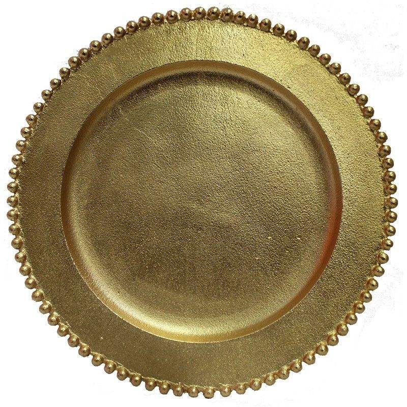 Assiette de présentation ronde décorative de 13 pouces en plastique doré avec perles dorées pour événements et dîners