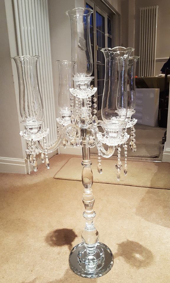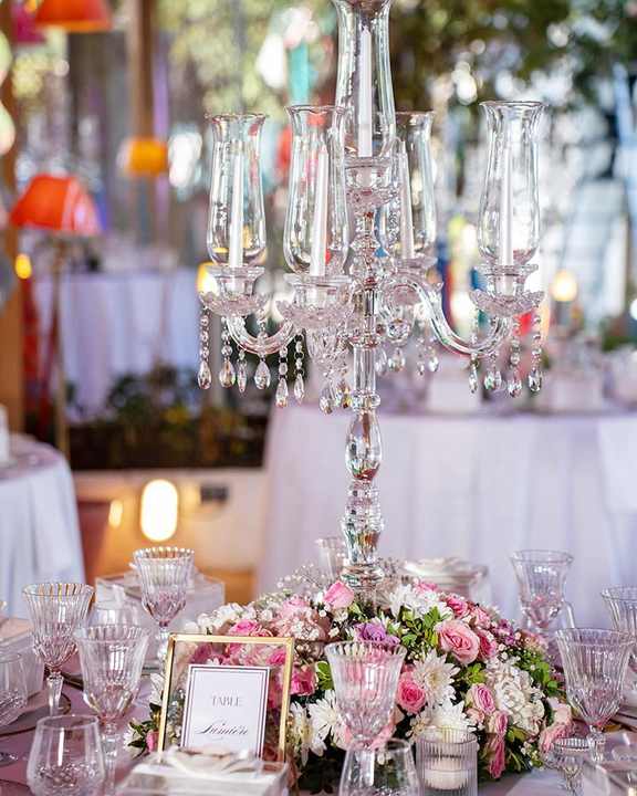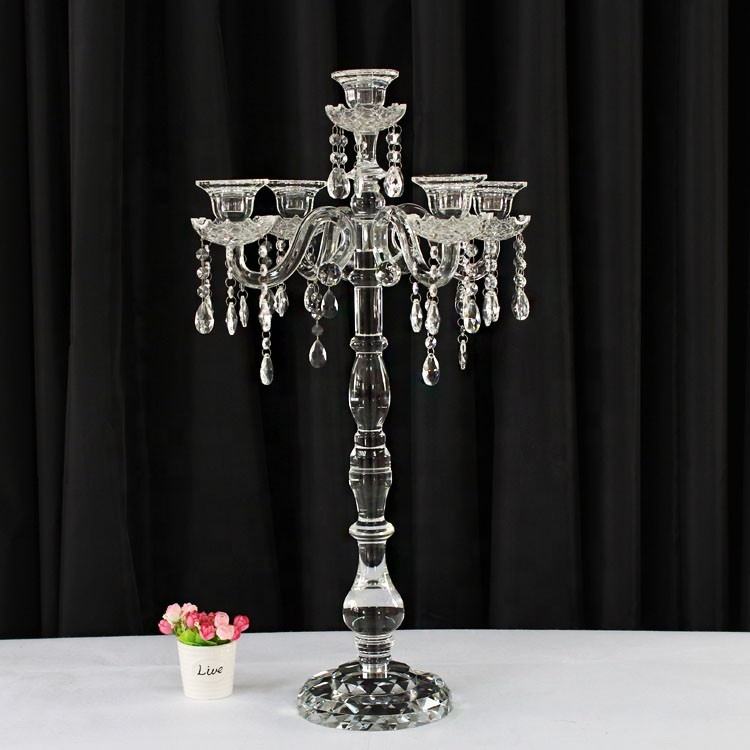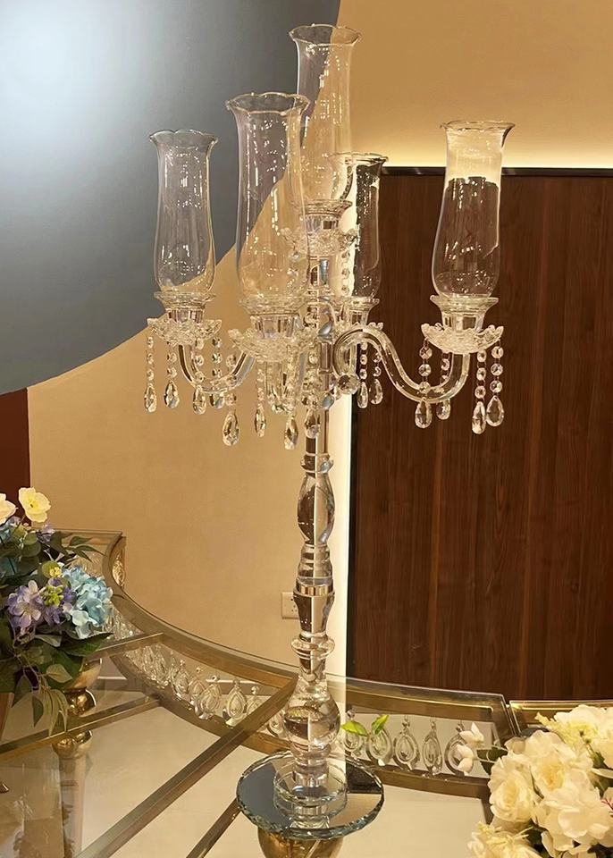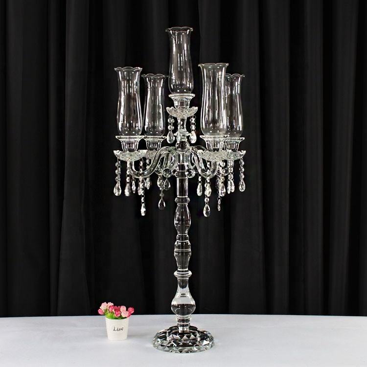 Candelabre en cristal à 5 branches pour mariage avec bougeoir en verre hurricane, centre de table pour décoration de table
