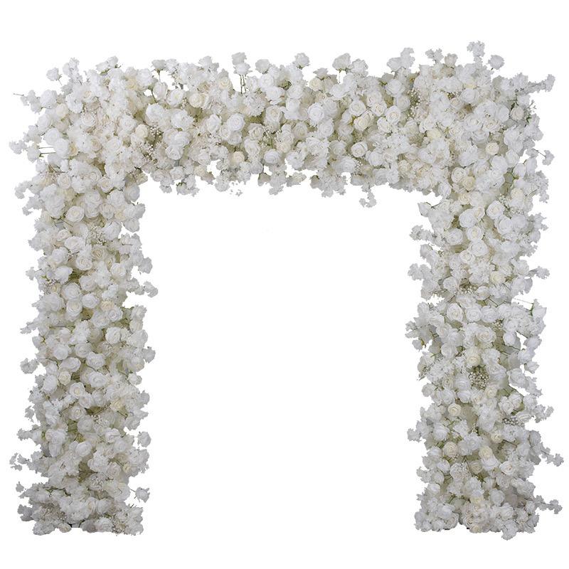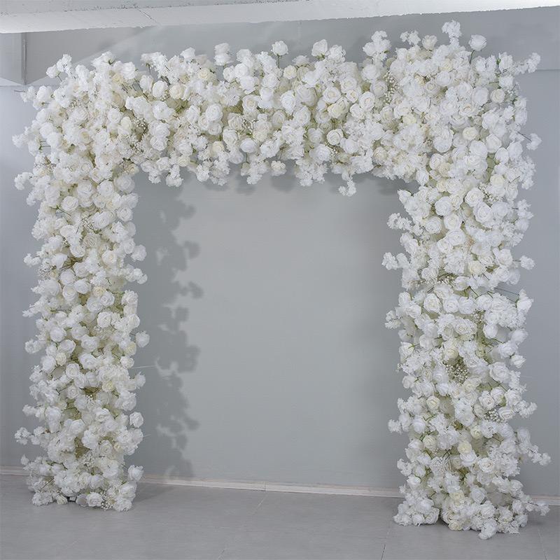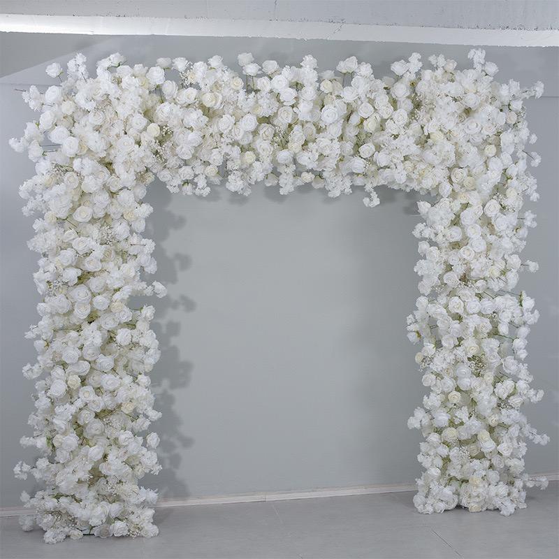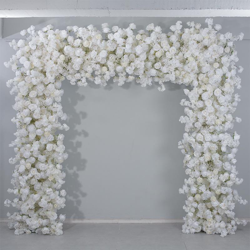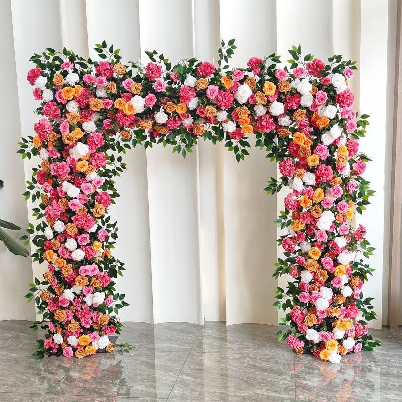 Arche de mariage avec fleurs fraîches, arrangement floral carré, décoration d'arche de fleurs en soie rose