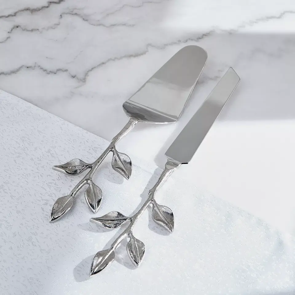 Coupe-gâteau de mariage avec manche en bois, outil de service de dessert en acier inoxydable doré pour les événements de mariage de la mariée et du marié