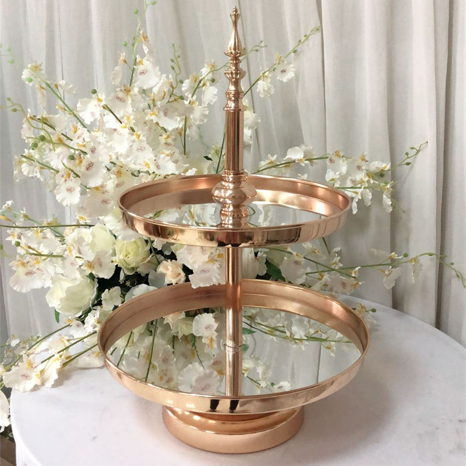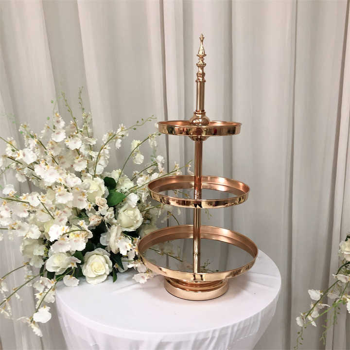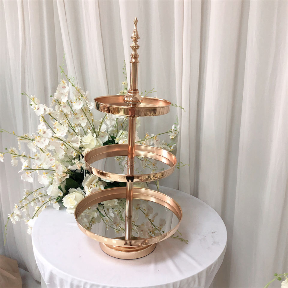 Support pour gâteau de mariage Support pour gâteau de fête d'anniversaire à 3 niveaux Support pour gâteau en métal doré pour mariage