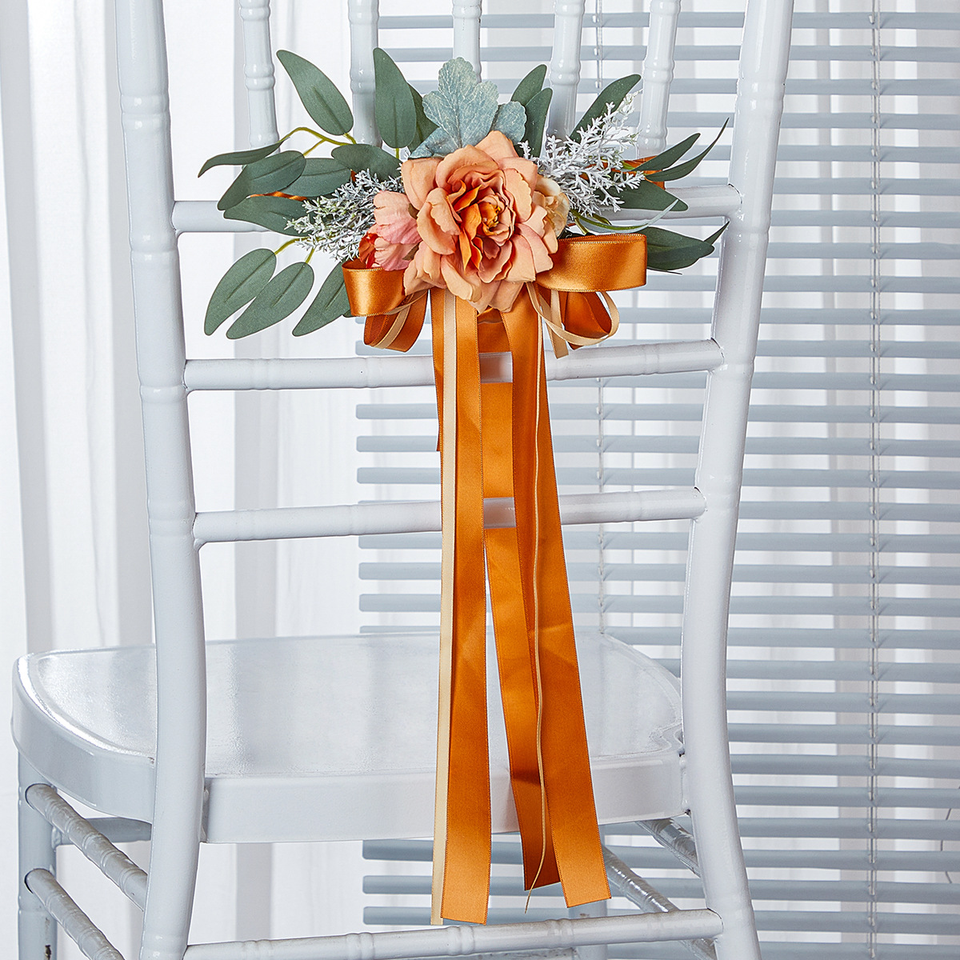 Chaise de mariage fleurs arrière cuisine décor roses artificielles extérieur mariage Guide rideaux cravate pour décorations de noël