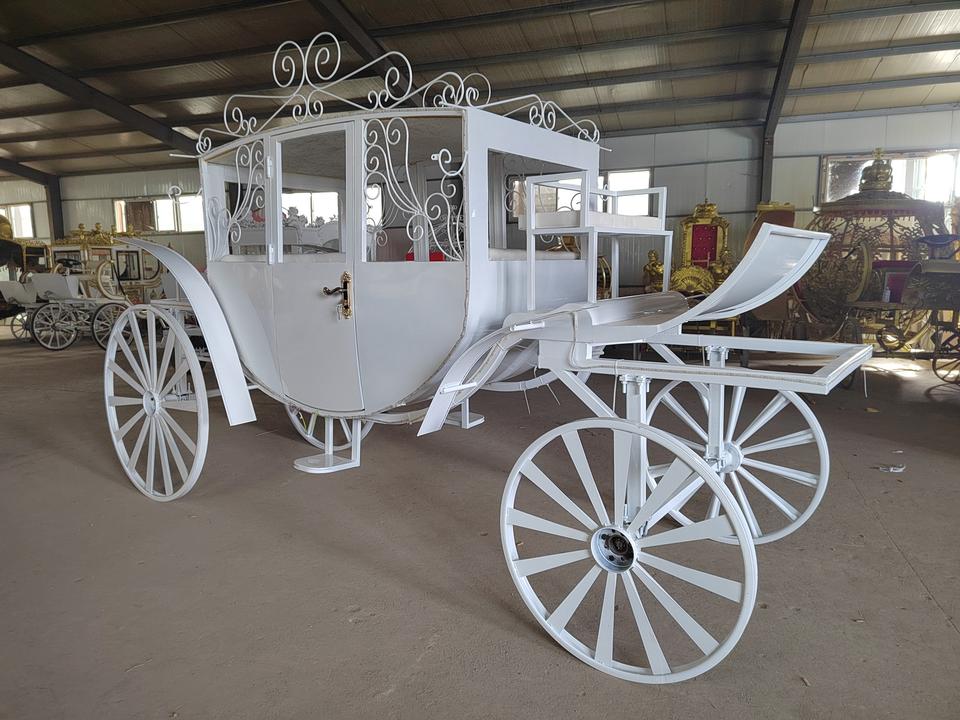 Type de boîte de chariot de Cendrillon fermé de mariage cadre en acier tiré par des chevaux blanc facultatif pour le transport spécial