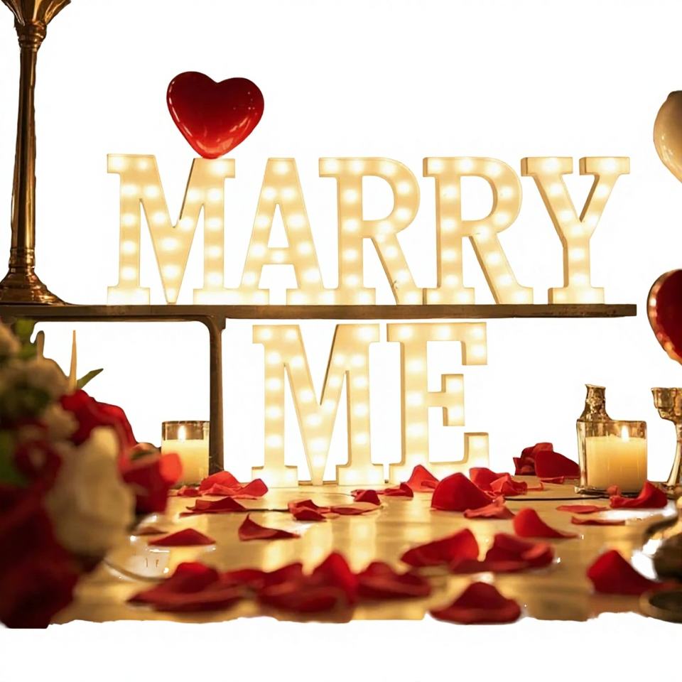 Décoration de mariage : Lettres lumineuses LED 3D « Marry Me » et « Love » de 4 pieds, conformes CE RoHS, alimentées par transformateur, grand format géant