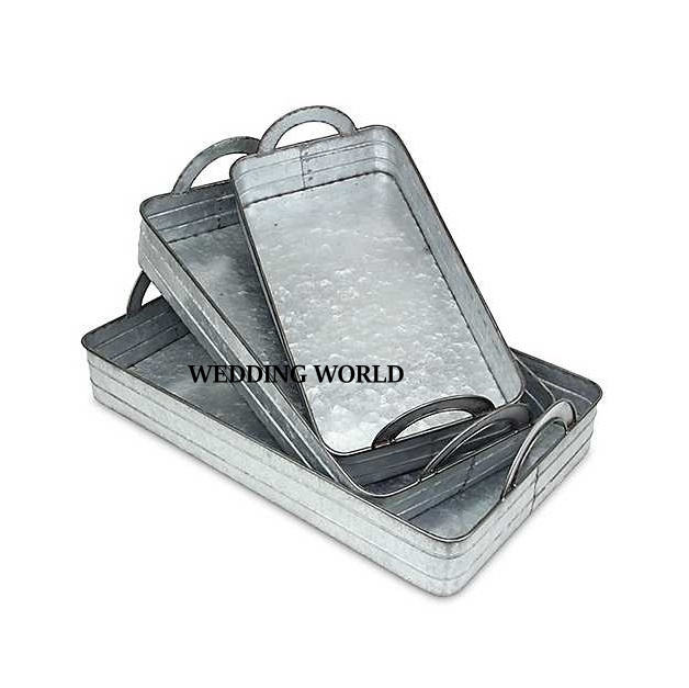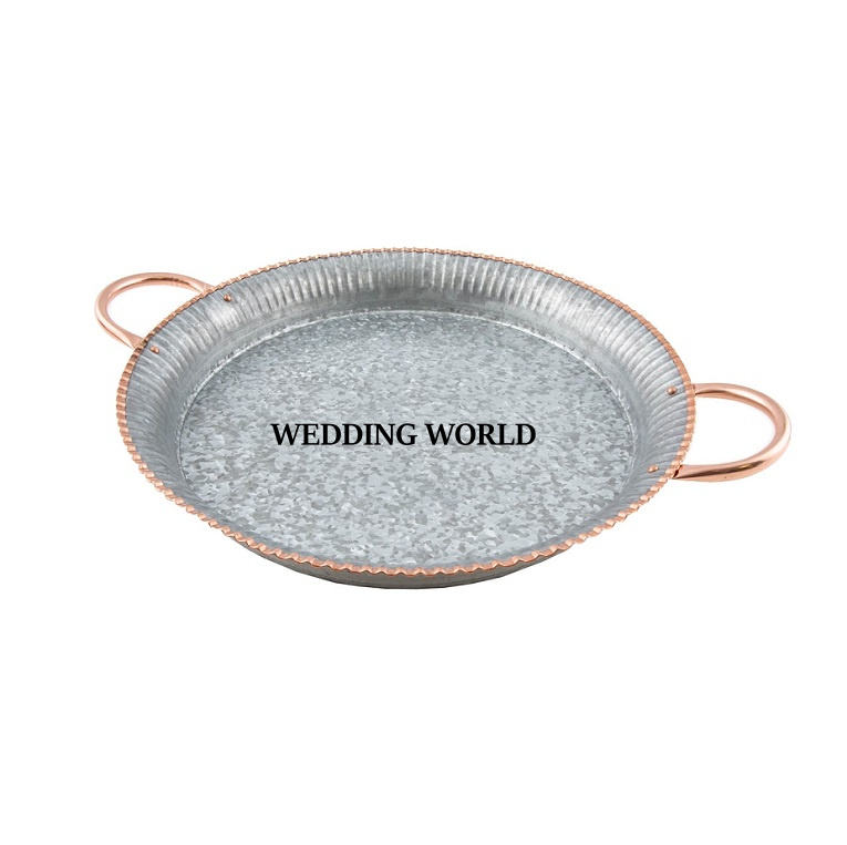 Plateau de service galvanisé de décoration de mariage plateau de service fait main de forme ronde plateau de service en métal de luxe de concepteur de meilleure vente