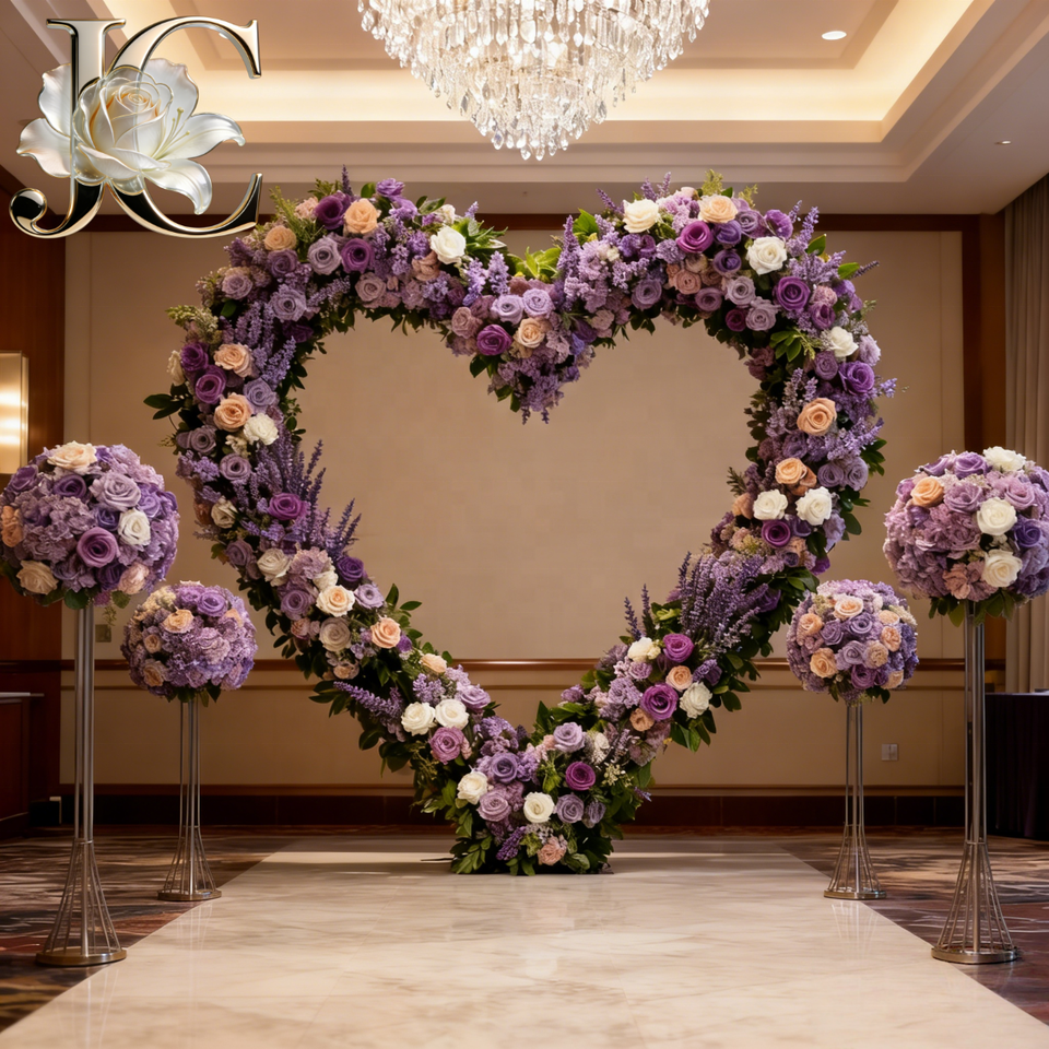 Décoration de mariage, toile de fond enroulable faite à la main, violette, 8 pieds x 8 pieds, arche en forme de cœur, fleurs artificielles, panneaux de roses en soie, mur de fleurs
