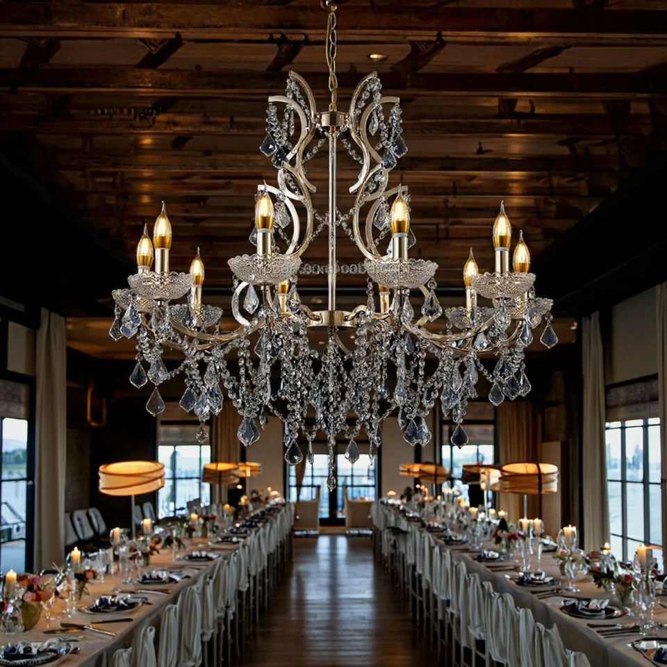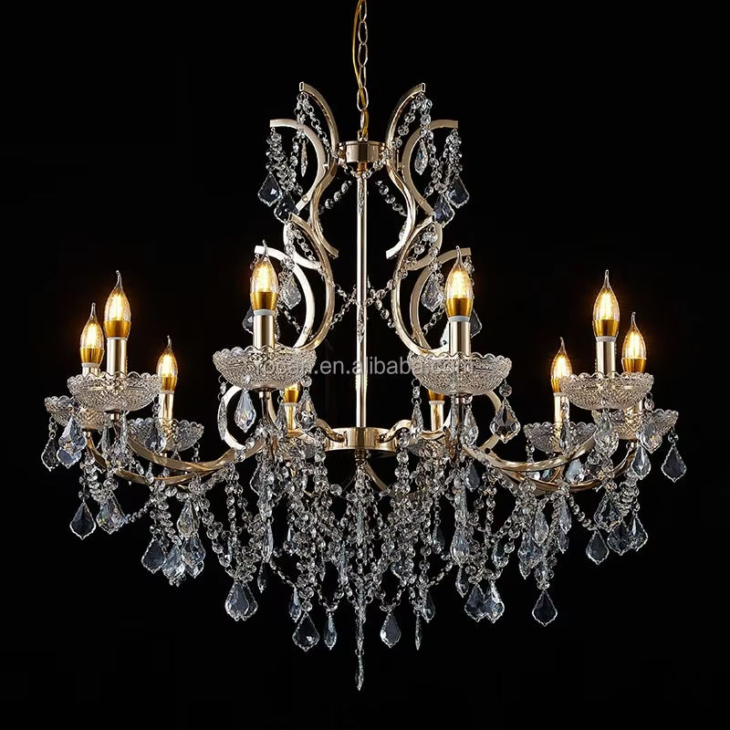 Ensemble de décoration de mariage, luminaire suspendu réglable, lustre en cristal en forme de goutte de pluie avec finition dorée vintage, source d'éclairage LED