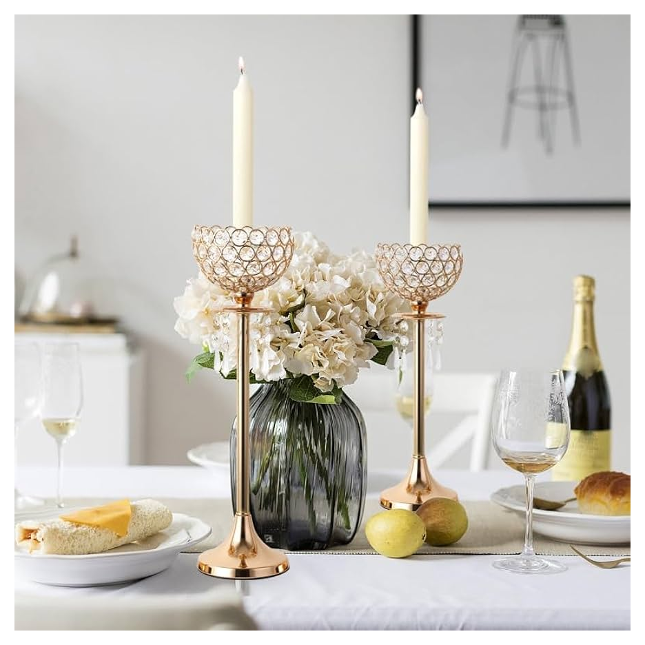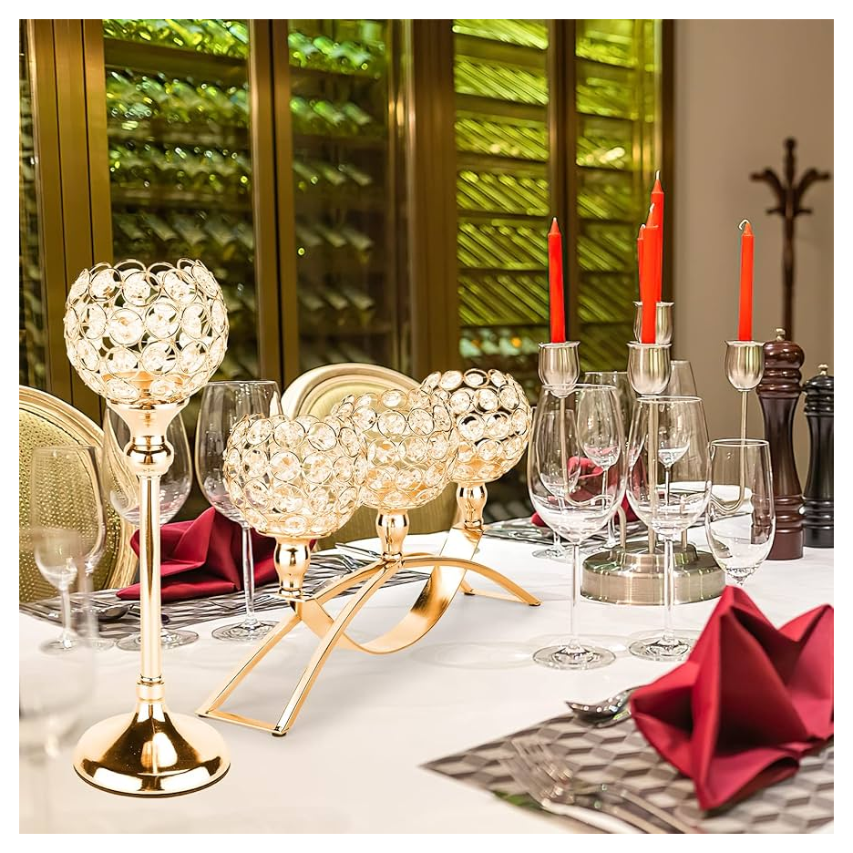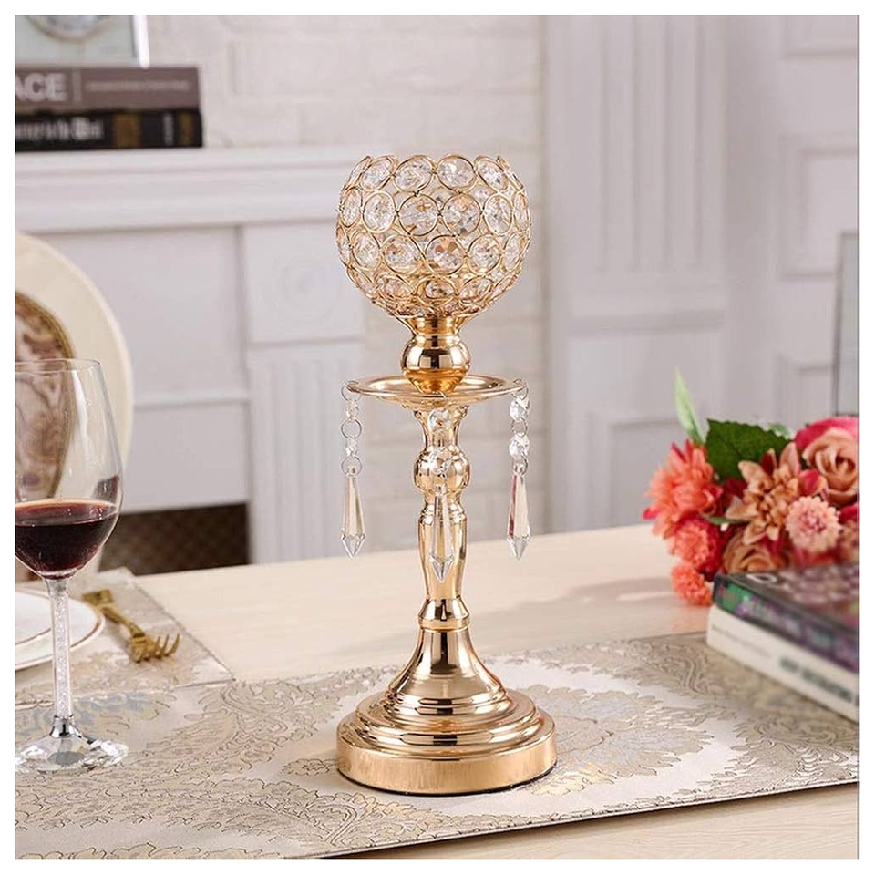Pièce maîtresse de table de décoration de mariage bougeoir en cristal bougeoir doré de style européen pour la décoration intérieure