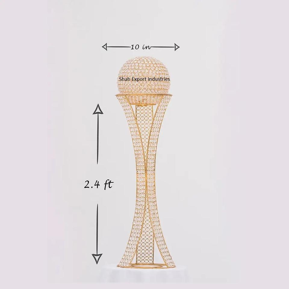 Pièce maîtresse de table en cristal décorative pour mariage, boule trophée sur support, finition dorée pour la décoration de table de mariage à la maison