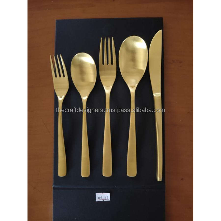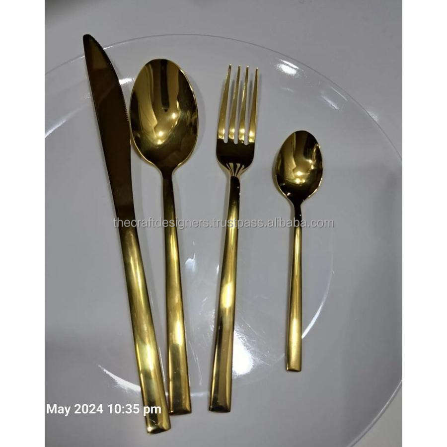 Ensemble de couverts dorés pour dîner de mariage, 5 pièces, couverts de luxe, adaptés au contact alimentaire, impression de logo personnalisée