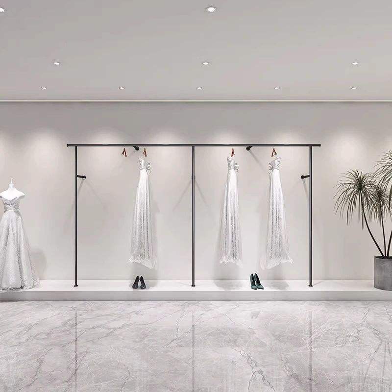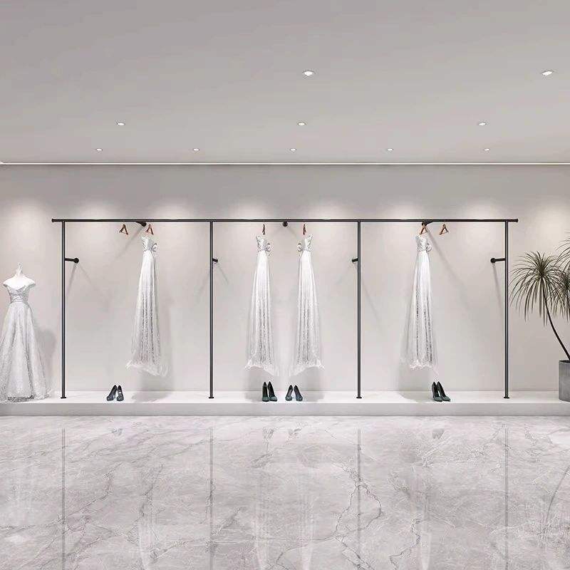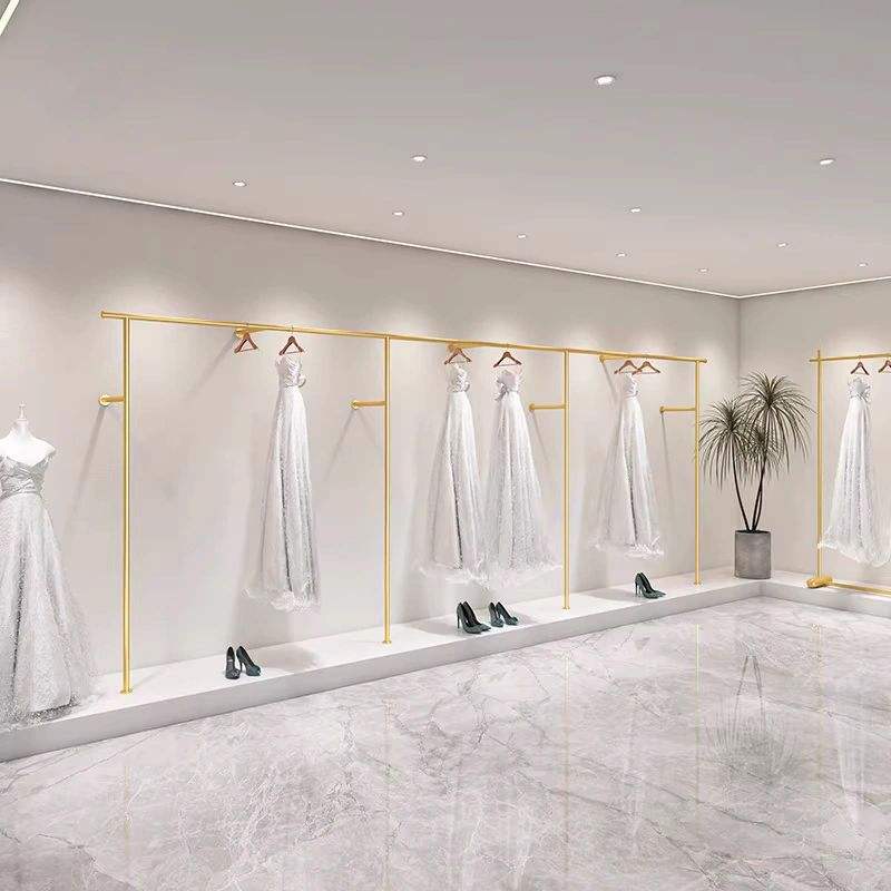 Porte-robe mural ou sur pied pour robe de mariée, cheongsam, présentoir de vêtements pour magasin, style Art Déco, en fer doré