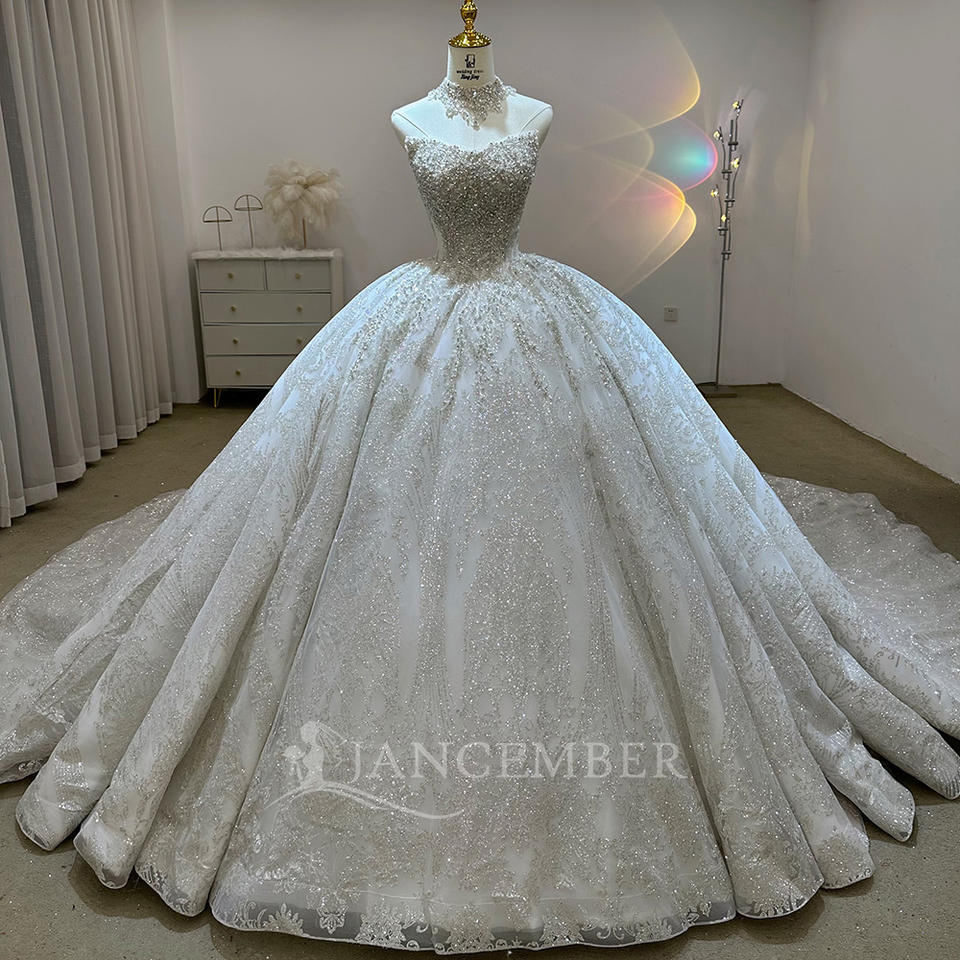 Robe de mariée grande taille à épaules dénudées, robe de mariée à paillettes et perles, taille XL, matériaux personnalisables pour les fêtes de mariage, les banquets, les cérémonies