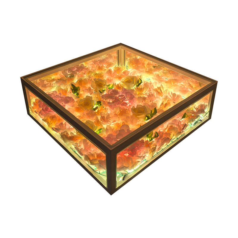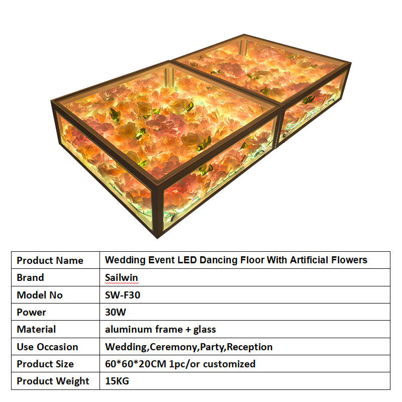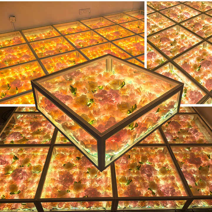 Piste de danse LED pour événements de mariage avec fleurs artificielles, éclairage de scène, miroir infini, piste de danse LED filaire