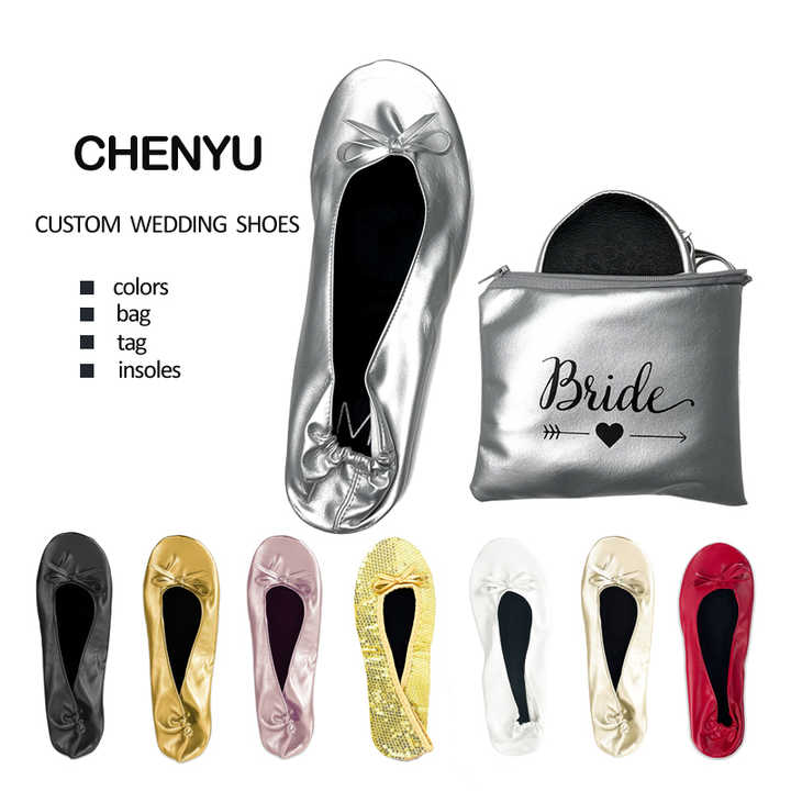 Chaussures plates de mariage pour la mariée pour la danse Chaussures de danse pour demoiselle d'honneur pour fille Chaussures plates de ballet pliables et sandales