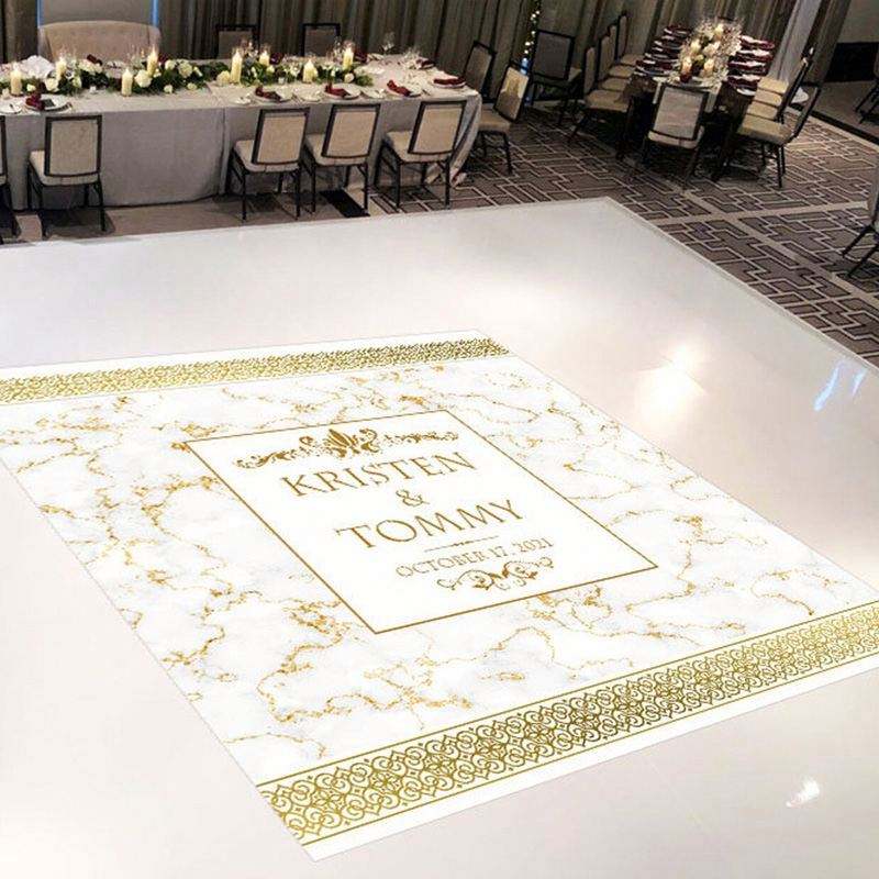 Autocollant de sol pour mariage, vinyle imperméable, monogramme, initiales, motif rectangulaire, autocollant pour piste de danse
