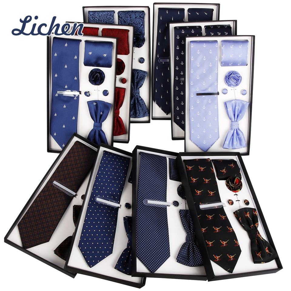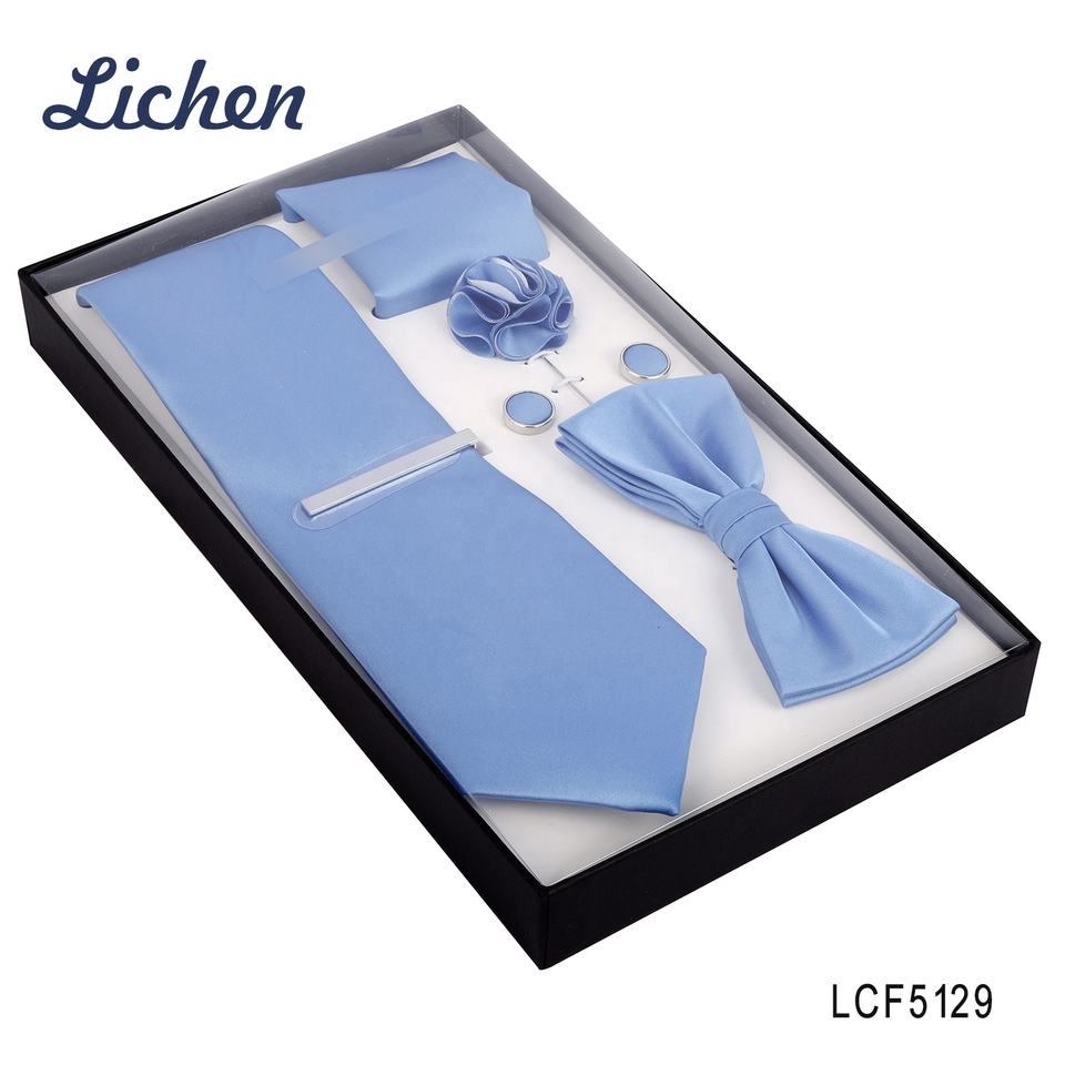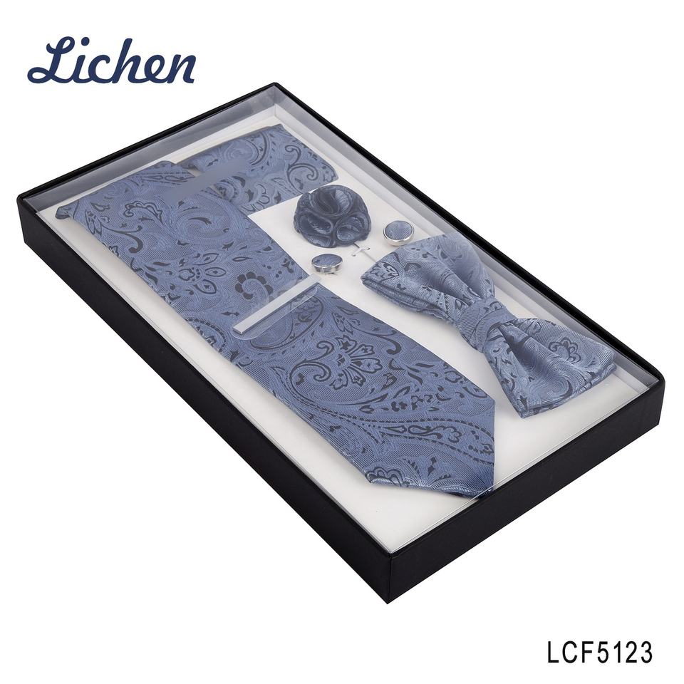 Coffret cadeau de mariage : cravate fine à motifs blancs et bleus Churchill pour homme