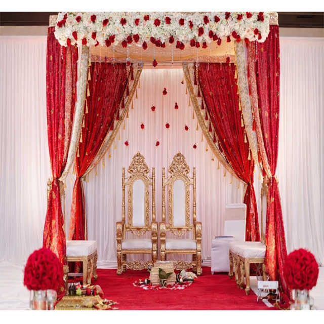 Chaises de mariage Mandap pour la mariée et le marié, magnifiques chaises de style Maharaja, chaises dorées de mariage à dossier haut et long, Californie, États-Unis
