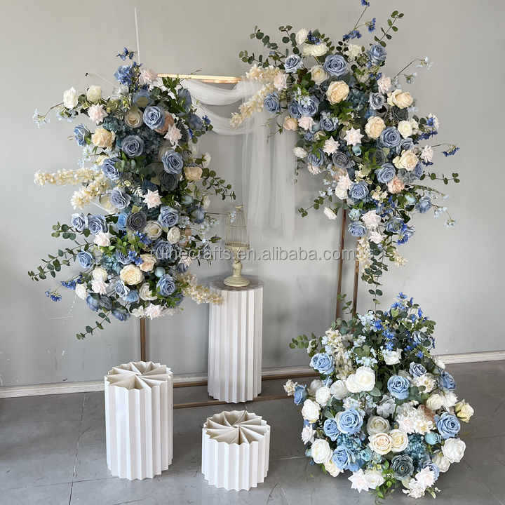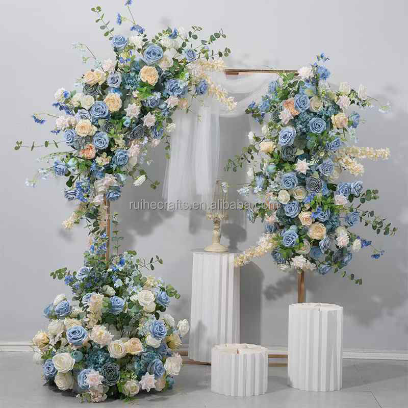 Mariage coin bleu panneau floral Arrangement de fleurs coureurs soie bleu fleur Rectangle fond support pour décor de scène
