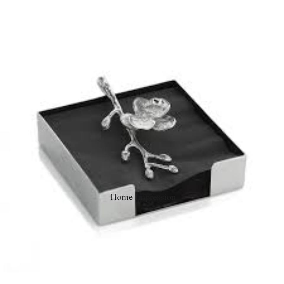 Centre de table et décorations pour mariages et fêtes Boîte en métal plaqué argent avec fleur Boîte en papier de soie de créateur