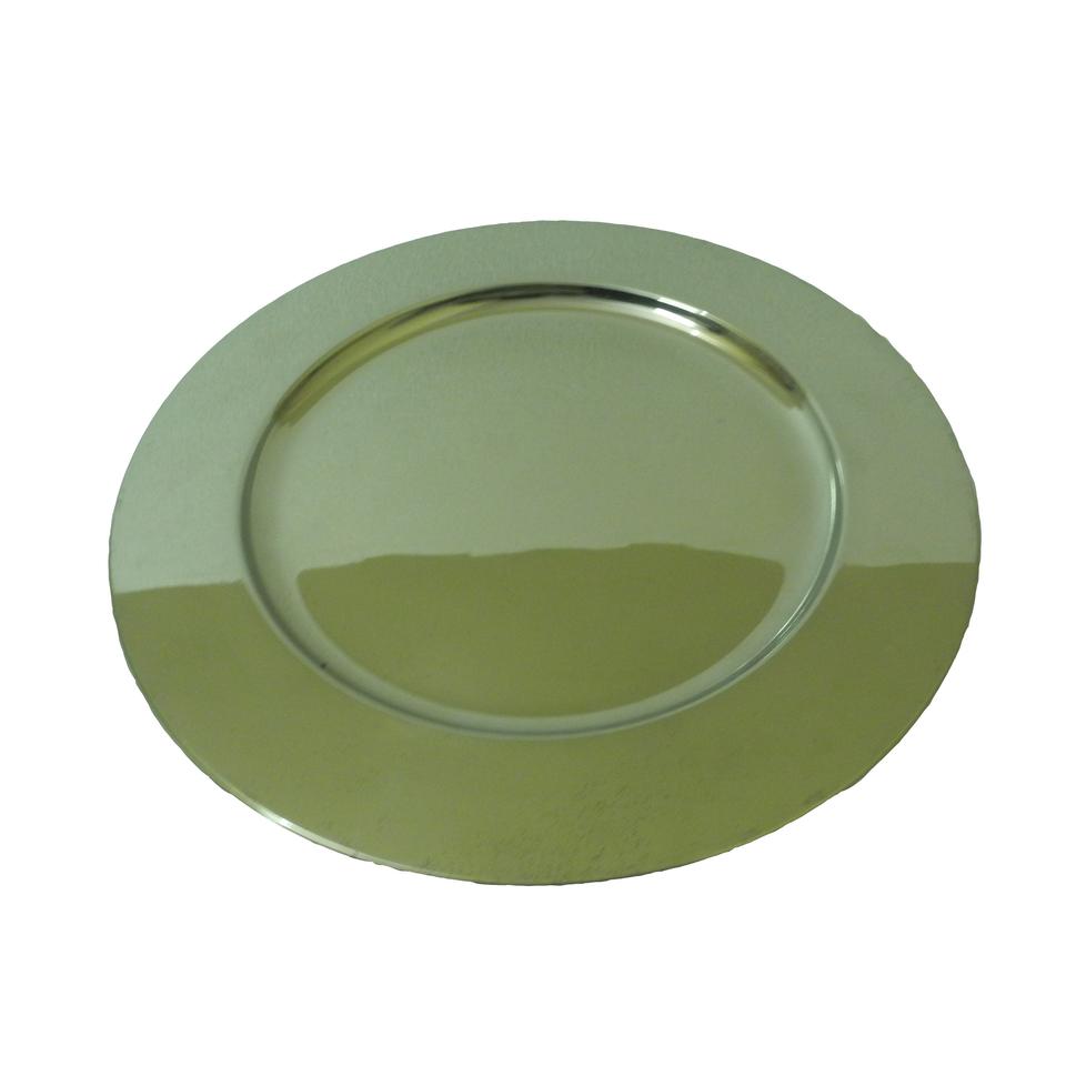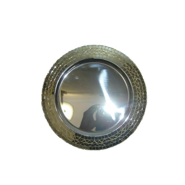 Assiette de service de restauration de fête de mariage avec finition en nickel, assiette de service arrondie en acier inoxydable avec bordure gaufrée