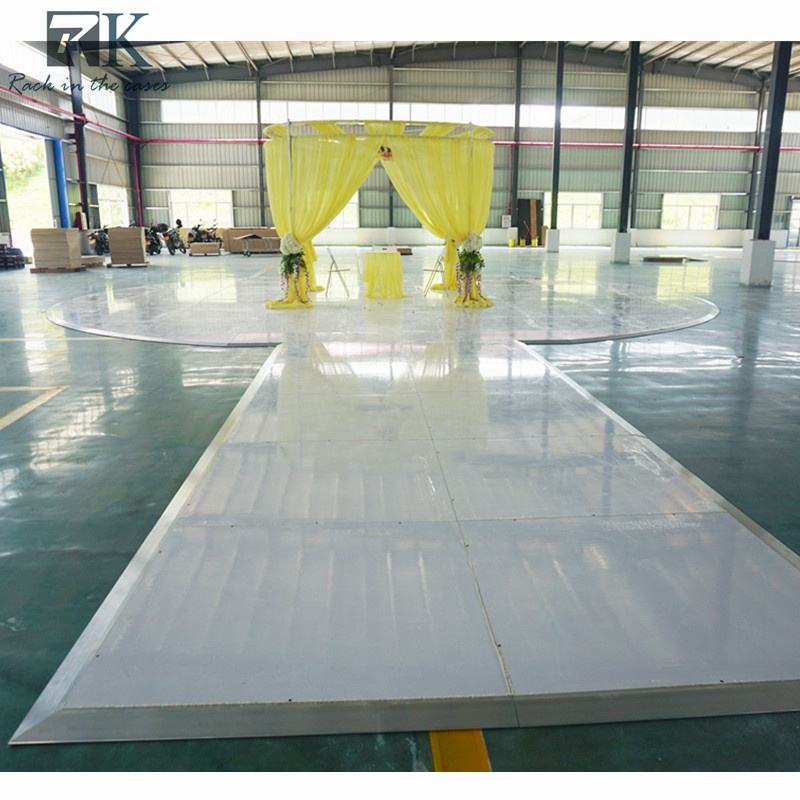Panneau de piste de danse circulaire emboîtable blanc brillant pour mariage, piste de danse en bois portable