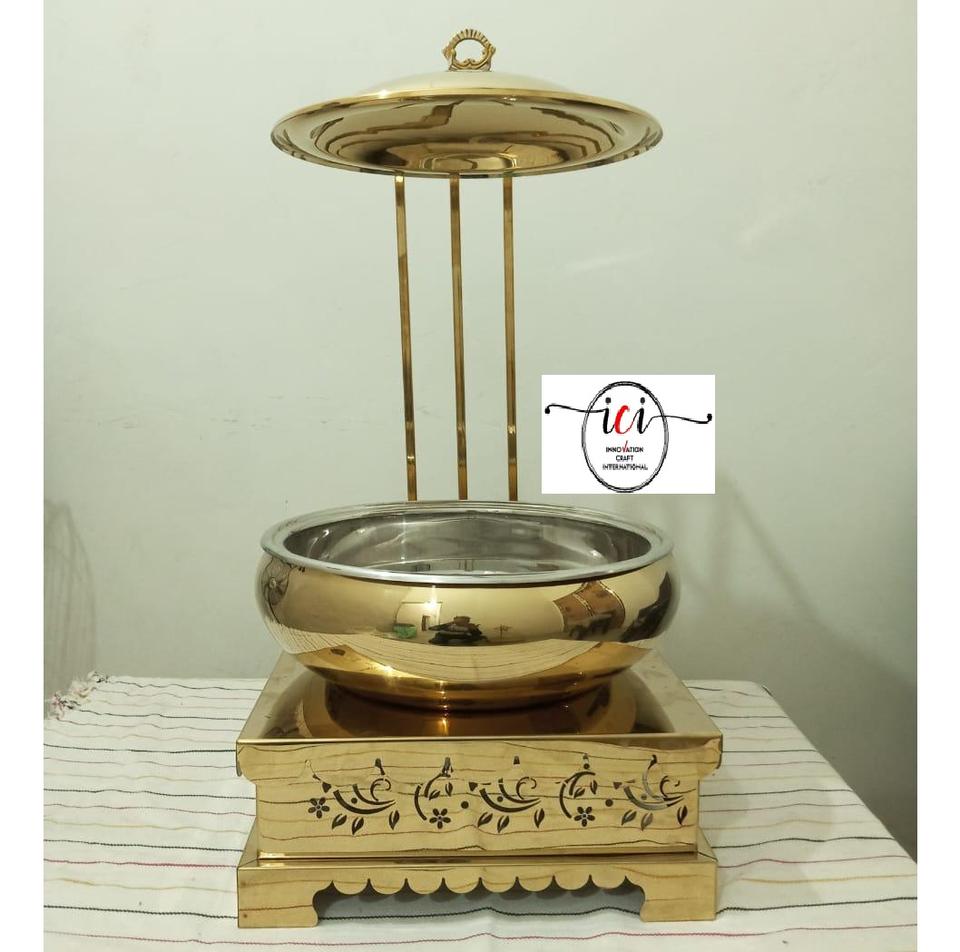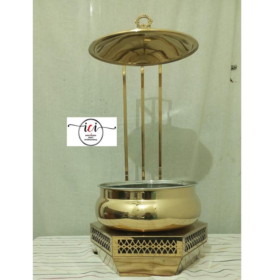 Nouveau Réchaud de Service en Acier Inoxydable avec Couvercle et Support pour Fêtes de Mariage et Événements, type Biryani Handi, pour la Présentation et le Maintien au Chaud des Aliments