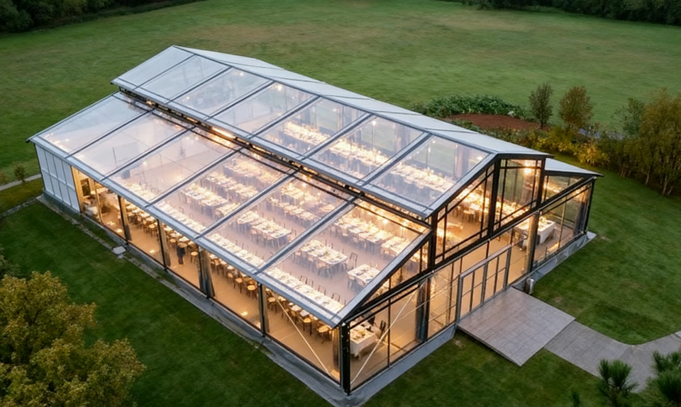 Tente de fête de mariage Taille Cadre en alliage d'aluminium personnalisé Longue durée de vie Maison verte