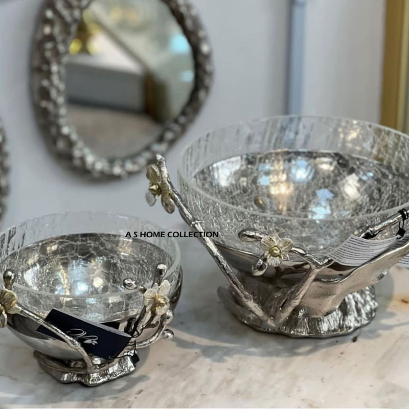Wedding Party & Events Luxurious Food Serving Bowls Metal Flower Branches Shape Design With Glass Round Direct Factory Sale