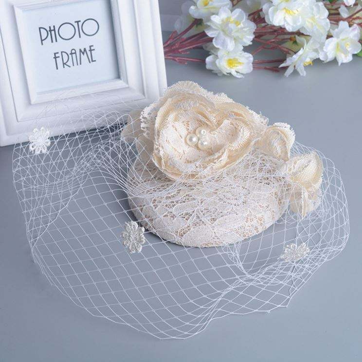 Base couverte de dentelle de fête de mariage avec chapeau d'accessoires de cheveux de mariée de voile Fascinator