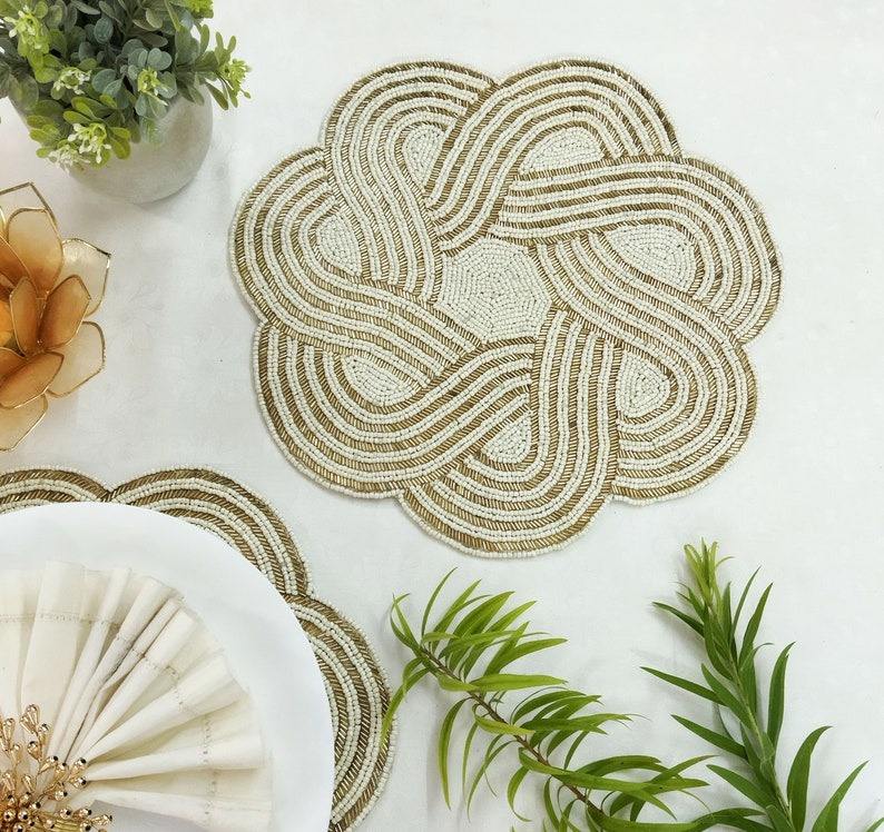 Décoration de table de fête de mariage, tapis en bois perlé, coussinets et sets de table