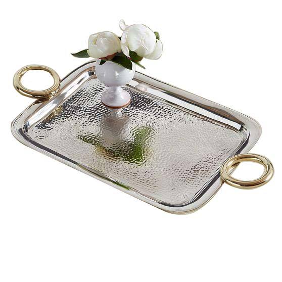 Plateau de service pour la décoration de table de fête de mariage, plateau de service en aluminium plaqué or, plateau de service avec plat de service en verre