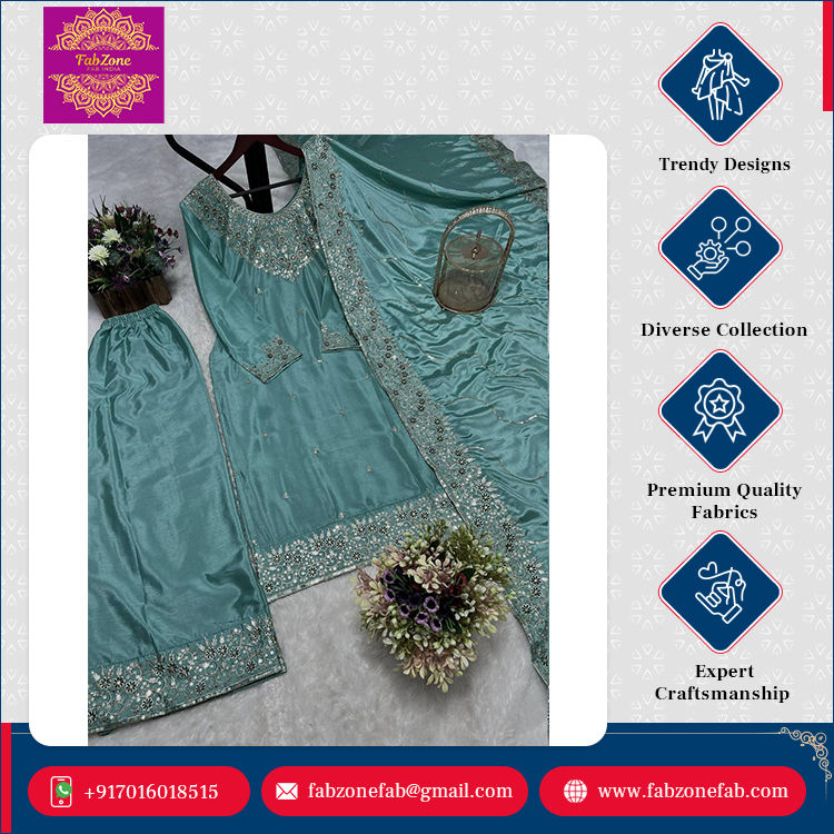 Ensemble 3 pièces de fil à broder en pure soie chinnon avec palazzo et dupatta