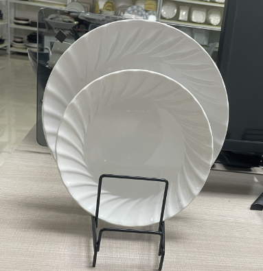 Ensemble d'assiettes pour mariage, vaisselle pour banquet d'hôtel, ensemble d'assiettes plates pour dîner avec motif de fleurs rondes blanches bon marché, ensemble d'assiettes de restaurant personnalisées