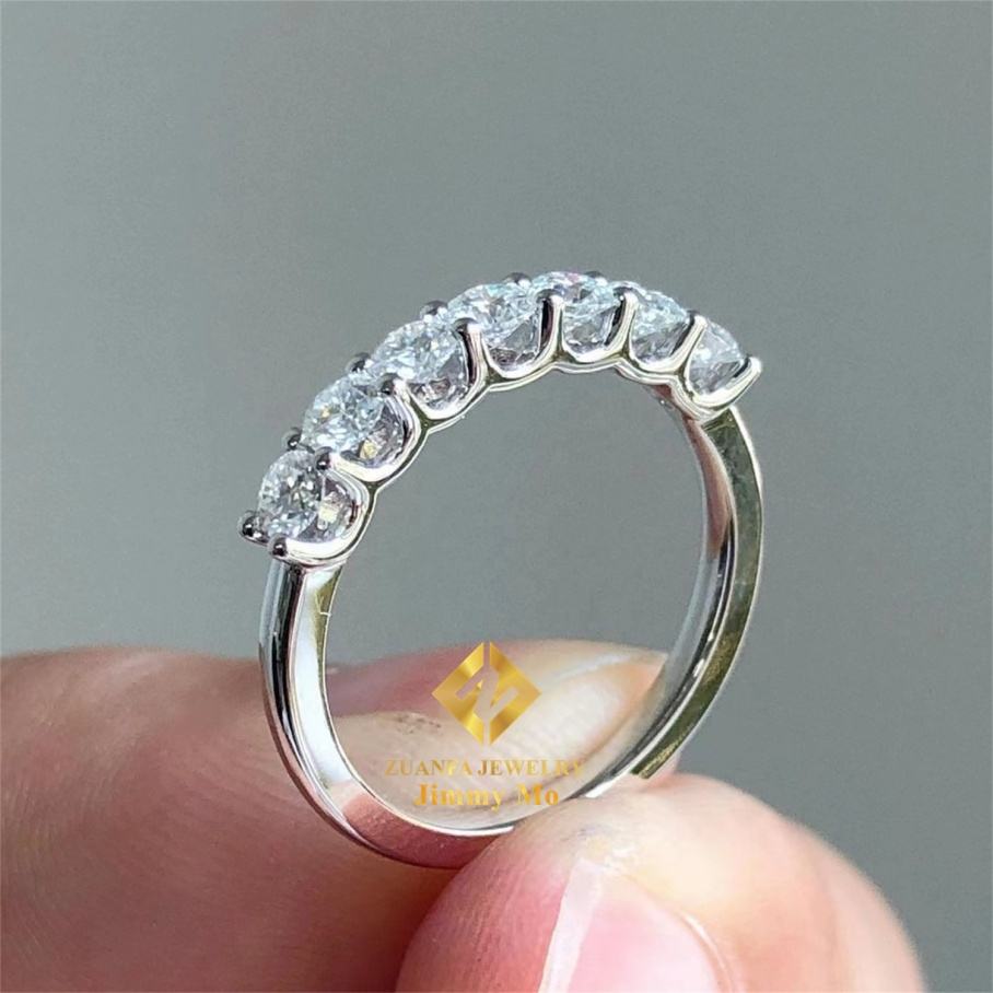 Wedding Prong Setting Bridal Jewelry 10k Yellow Gold VVS1 Round Moissanite Diamond Half Band Engagement Eternity Band Ring