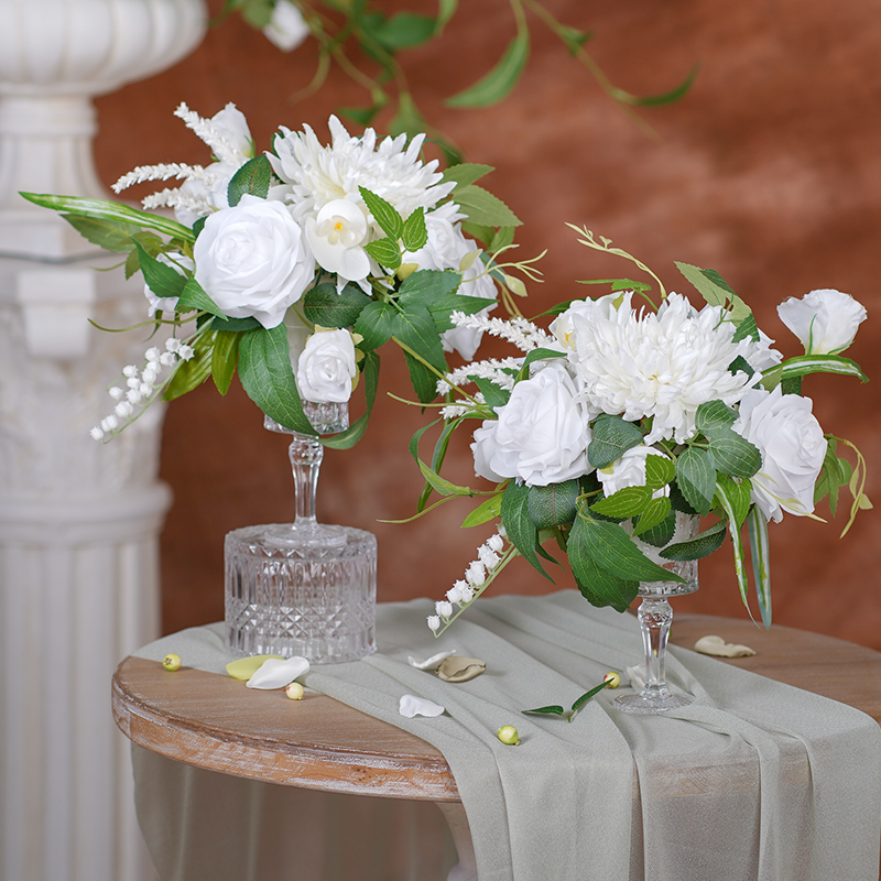 Table de réception de mariage Vase Décor Arrangement Floral Blanc Rose Verdure Coupe Fleur Photo Props Banquet Événement Fournitures A8624