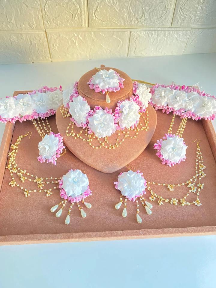 Bijoux de mariage fleur de rose pour mariée ensemble Mehndi fait à la main avec Tikka collier bague boucles d'oreilles et bracelet