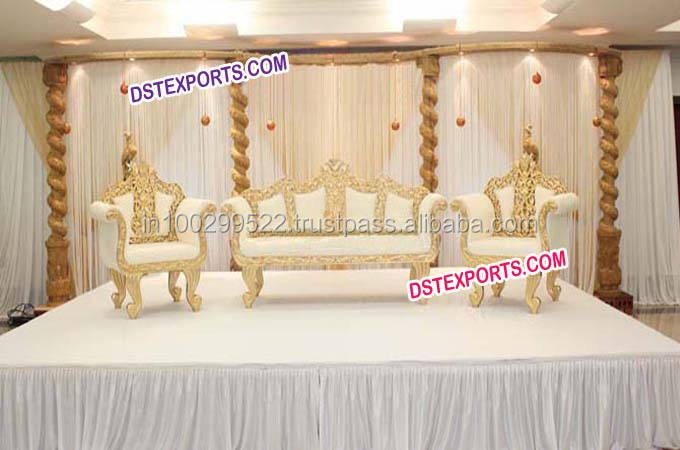 Ensemble de canapé doré sculpté Royal, meubles lourds de styliste/ensemble de canapé Shahi mahariya, pour mariage
