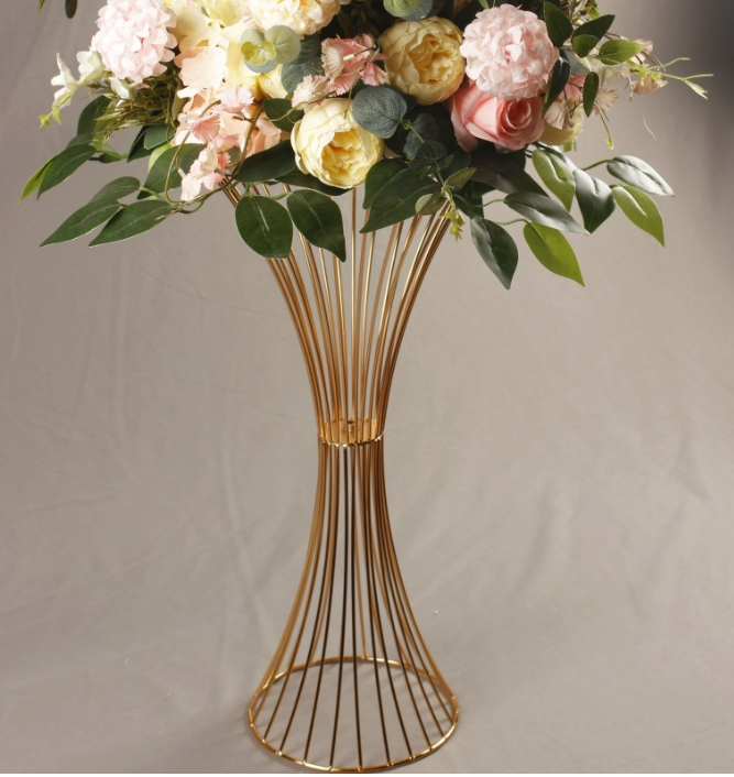 Wedding Runner Artificial Metal Flower Stand Centerpieces Small Waist Dessert Table Electroplated Gold Cake Rack Flower Stand