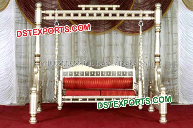 Ensemble de mariage en métal argenté sculpté Jhula, balançoires de mariage indien, mariage indien en métal argenté Jhula Australie