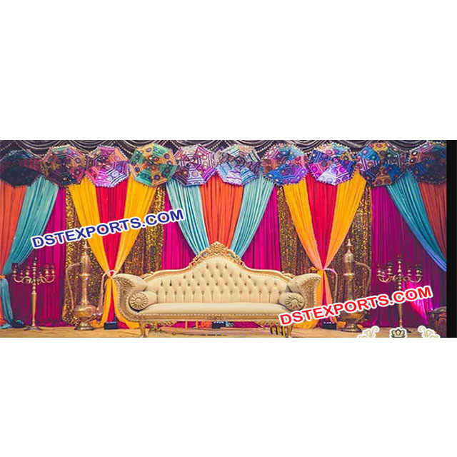 Toile de fond de scène de mariage de style rajasthani Fabricant et exportateur de décoration de toile de fond de scène de mariage indien