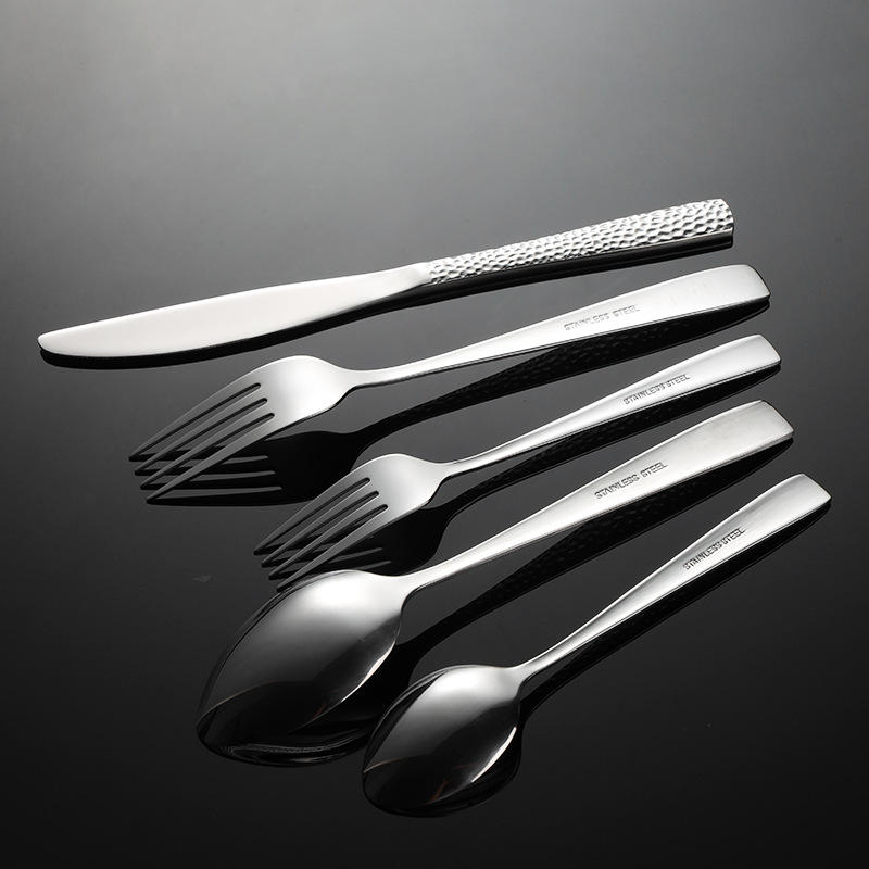 Ensemble de couverts de mariage en acier inoxydable, finition martelée or et argent, 65 pièces (couteaux, fourchettes, cuillères) pour la maison et la restauration
