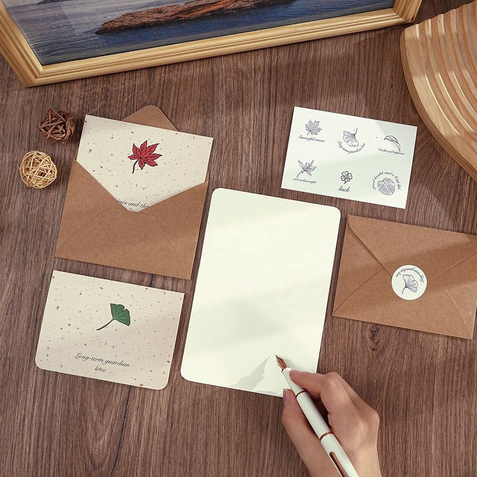 Carte de remerciement de mariage carte postale manuscrite en papier blanc floral cartes de remerciement personnalisées avec logo et enveloppe