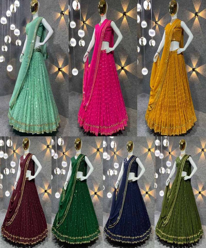Tenue de mariage en soie georgette brodée, Lehenga Choli Dupatta, tenue de soirée, design moderne, lavable, meilleur prix